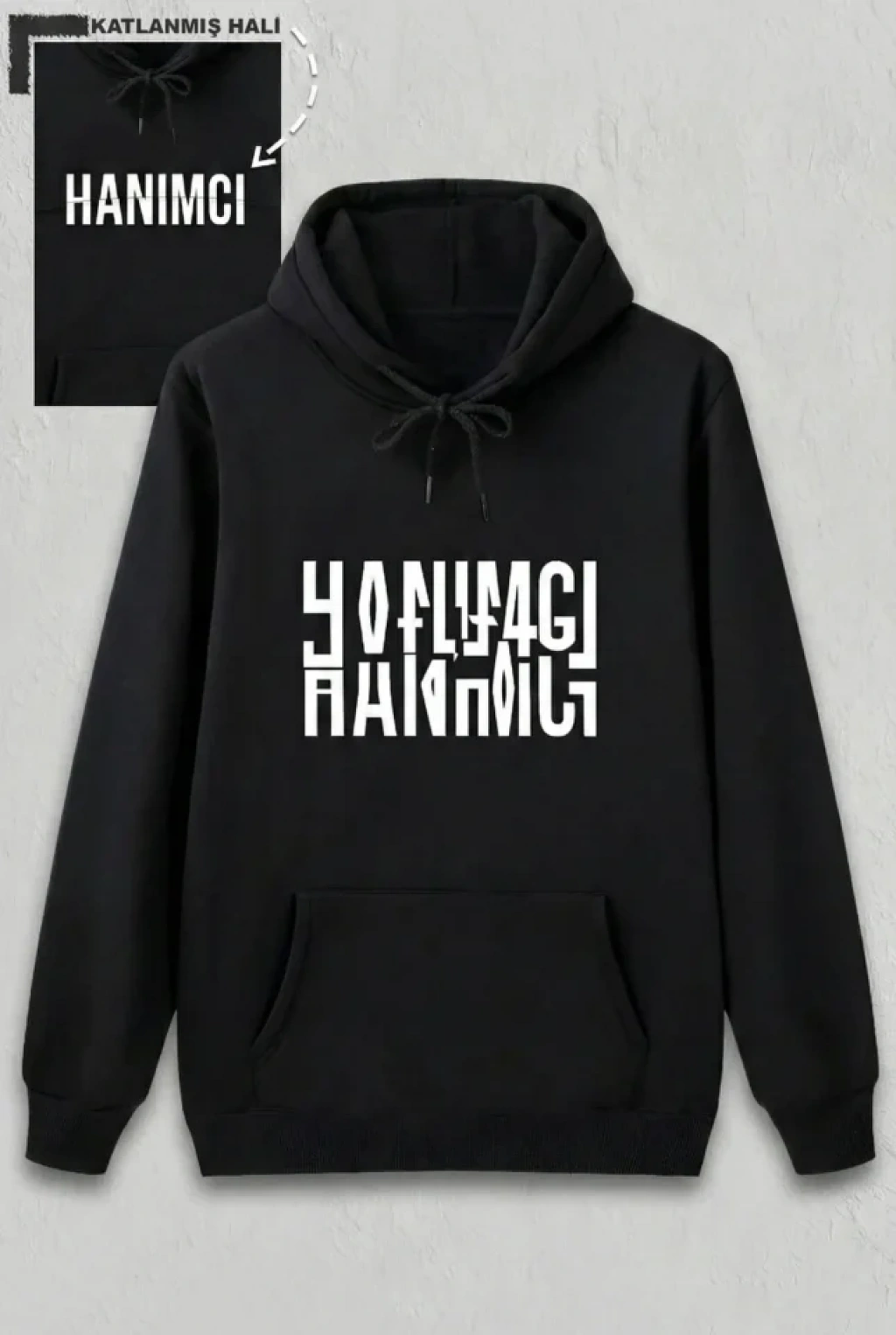 MARSiLYAN- Unisex Kapüşonlu Üç İplik Oversize Baskılı Sweatshirt - Siyah
