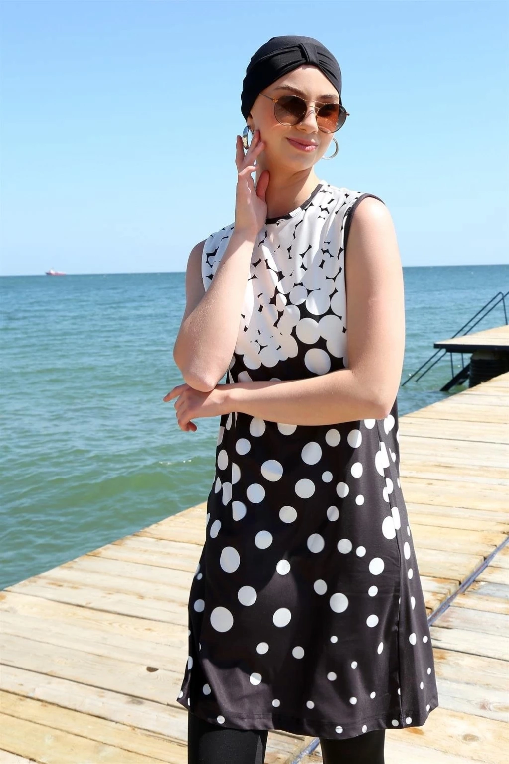 Çamaşır Kenti markasının şık ve modern tasarımıyla öne çıkan Sıfır Kol Puanlı Yarım Tesettür Mayo, plajın ve havuzun keyfini çıkarmak isteyen kadınlar için ideal bir seçenektir.