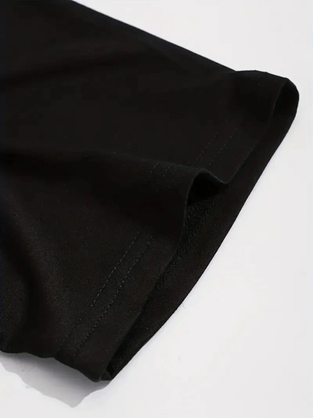 MARSiLYAN- Erkek Bisiklet Yaka Ön Baskılı Kısa Kollu Tişört Streetwear Günlük Basic Pamuklu T-shirt - Siyah