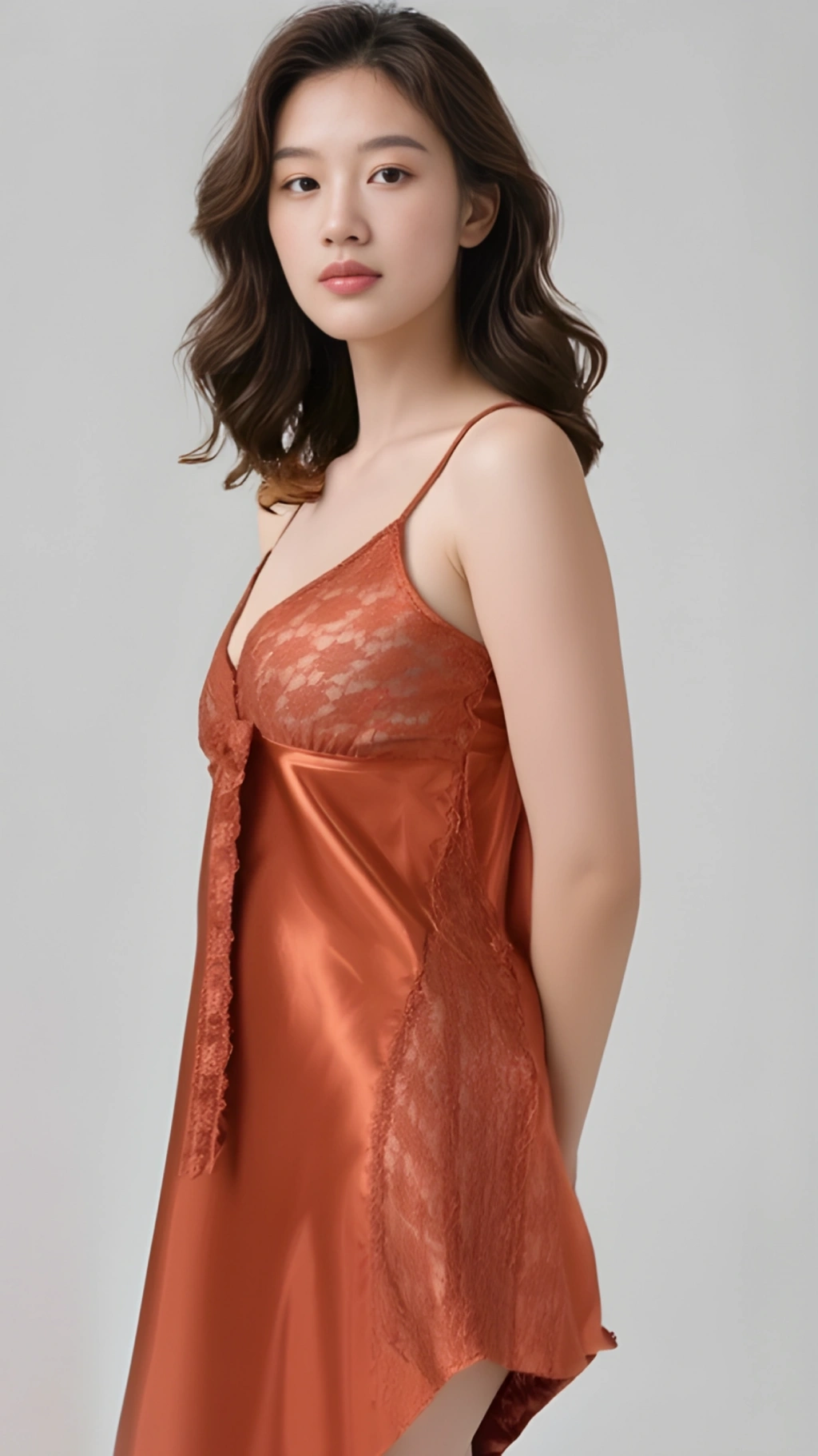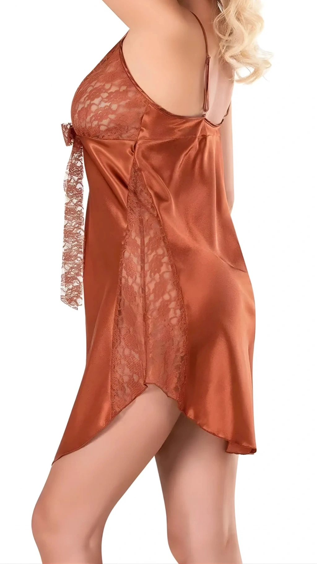 MARSiLYAN- Tarçın Saten Gecelik Zarif Kadın Gece Elbisesi