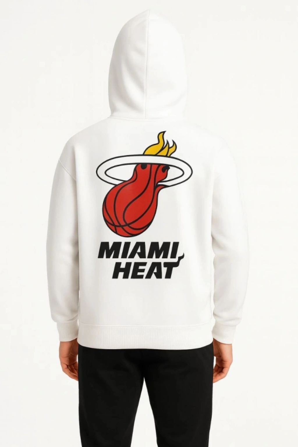 Üç İplik Kapüşonlu Ön Ve Arka Baskılı SweatShirt Hoodie - Beyaz