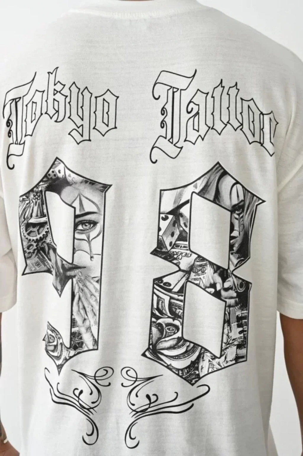 Unisex Baskılı Oversize T-Shirt - Beyaz