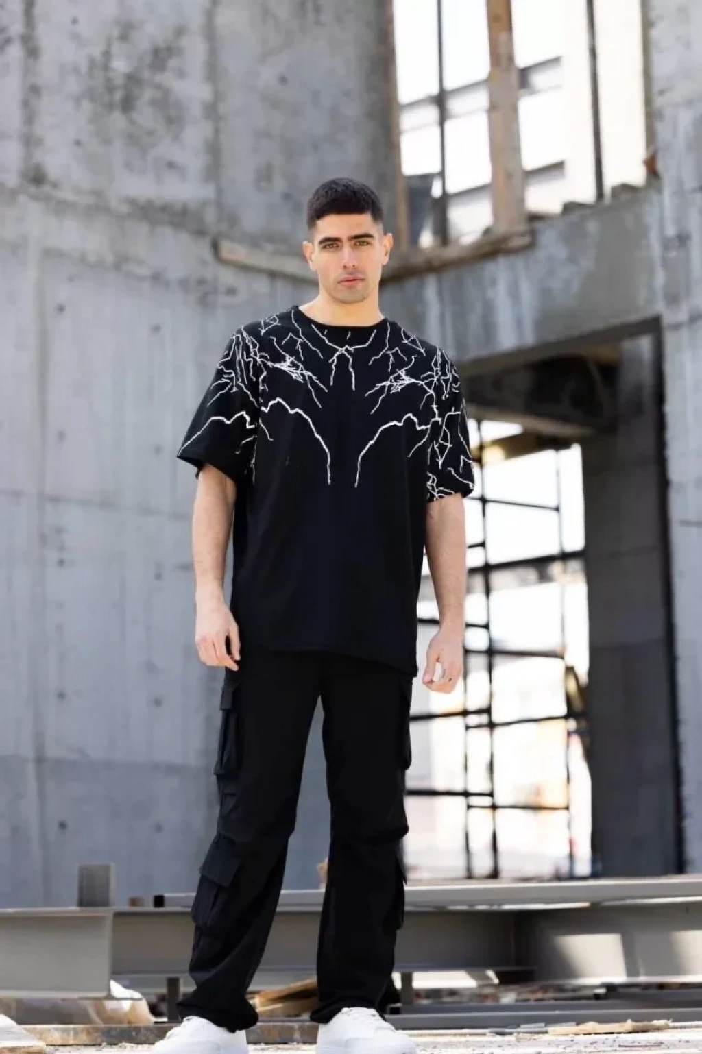 MARSiLYAN- Unisex Oversize Baskılı Bisiklet Yaka T-Shirt - Siyah