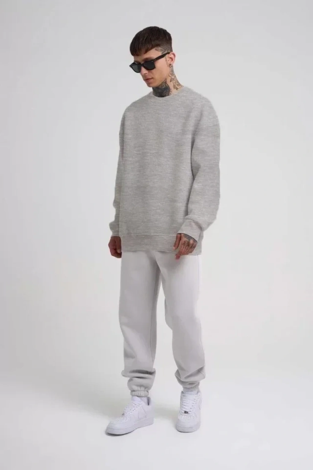 Unisex Biskilet Yaka Üç İplik SweatShirt - Gri