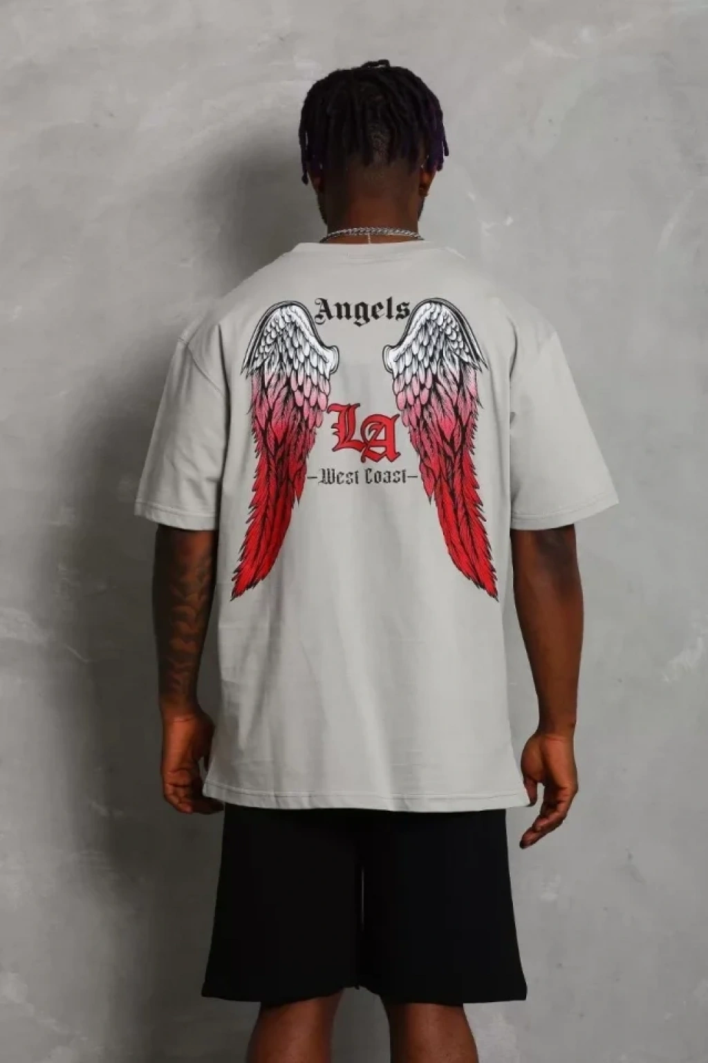 MARSiLYAN- Erkek Melek Baskılı Oversize T-shirt - Beyaz