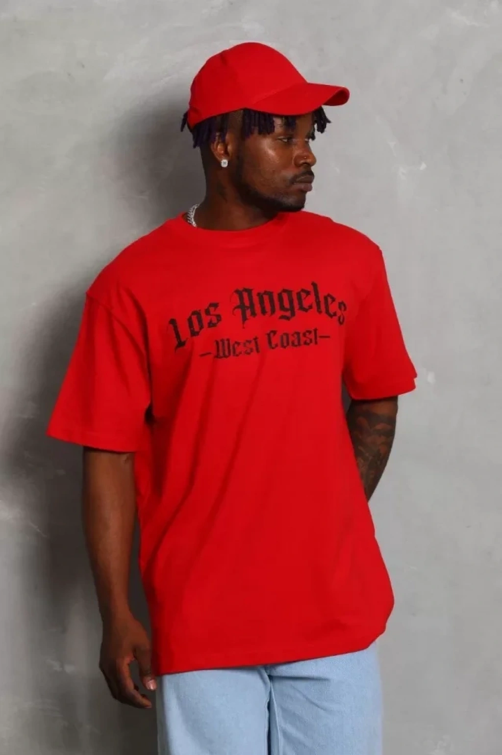 MARSiLYAN- Unisex Oversize Baskılı Bisiklet Yaka T-Shirt - Kırmızı