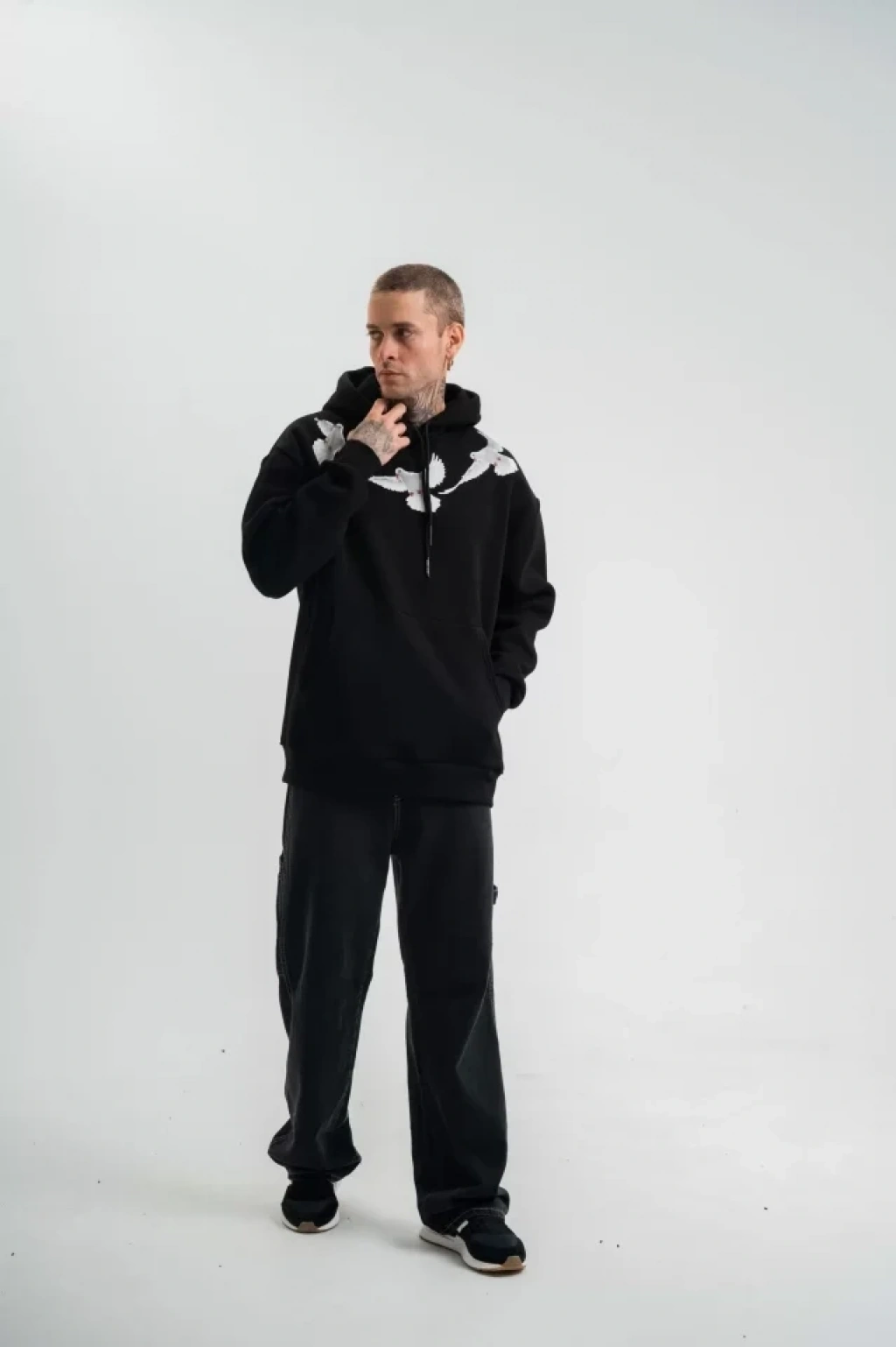 MARSiLYAN- Erkek Güvercin Baskılı Sweatshirt - Siyah