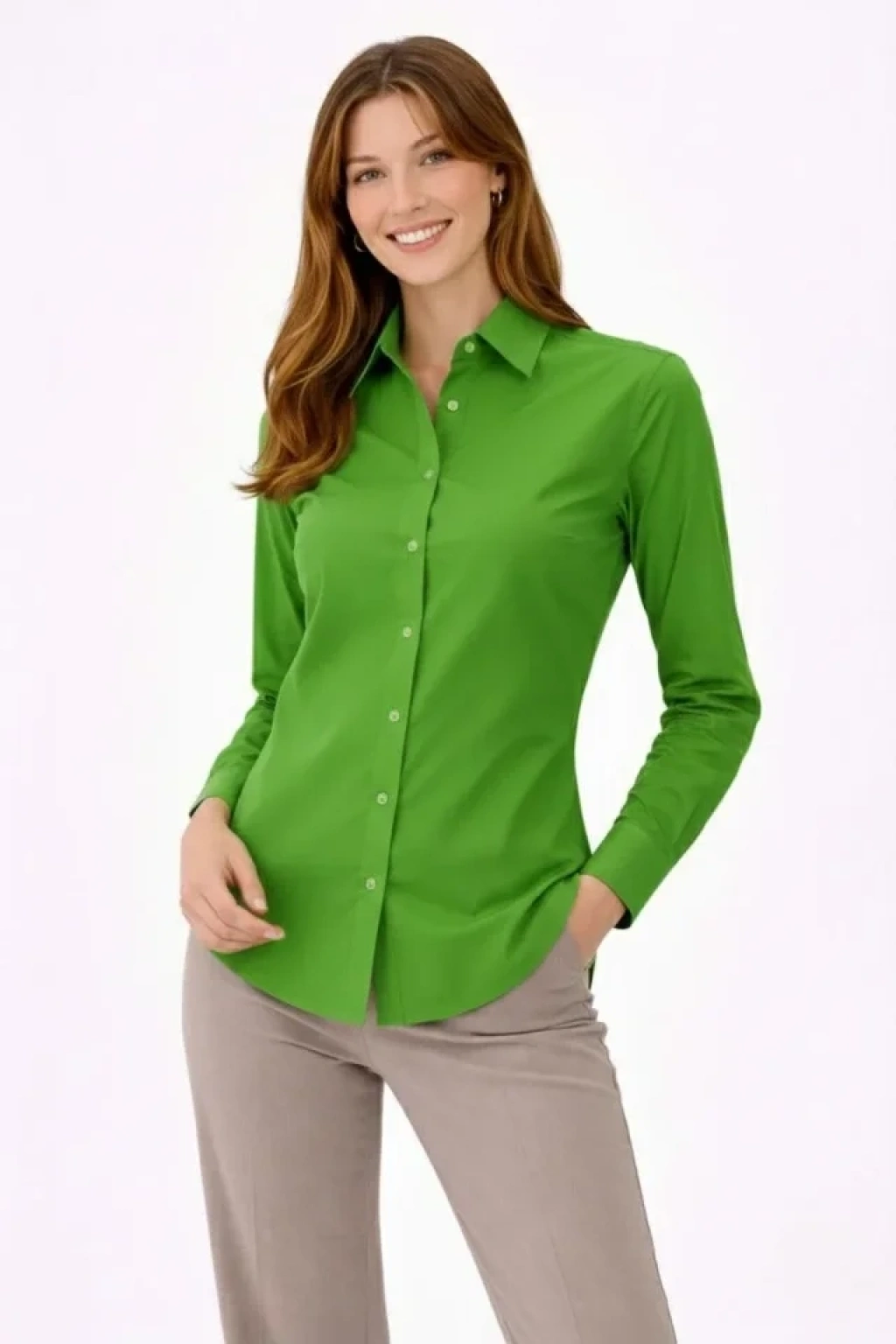 Uzun Kollu Gömlek Düğmeli Klasik Yaka Günlük Ve Ofis Şıklığına Uygun - Yeşil