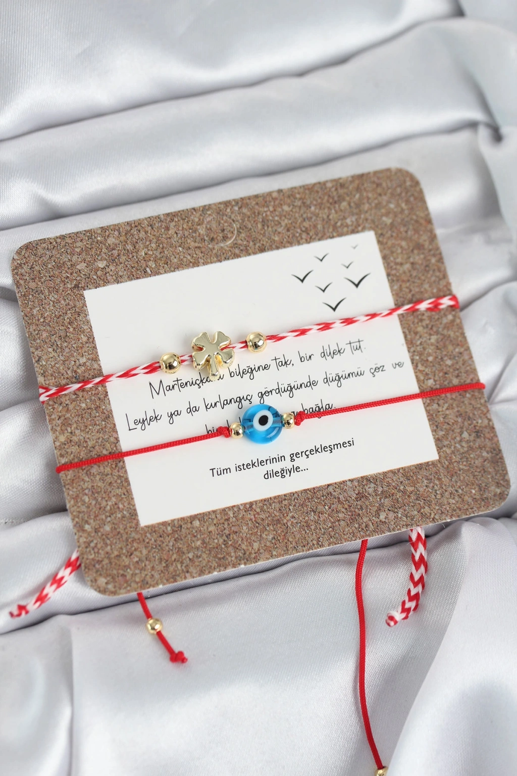 Bileklikler asansörlü makromedir. Objelerdeki renkler karışık renkte gönderilebilir.Martenicka Hikâyesi ve KökeniMartenicka geleneği, baharın gelişi, doğanın uyanışı ve iyilik–sağlık dilekleri ile ilişkilidir.En yaygın anlatıya göre:Balkan mitolojisinde “Baba Marta” (Mart Ana) adında bir figür bulunur.Baba Marta’nın yüzü neşeli olduğunda hava ısınır,Kızdığında ise yeniden soğur veya kar yağar.İnsanlar Baba Marta’nın yüzünü güldürmek, baharı çağırmak ve kötü ruhları uzak tutmak için kırmızı-beyaz ipten Martenicka takarlar.