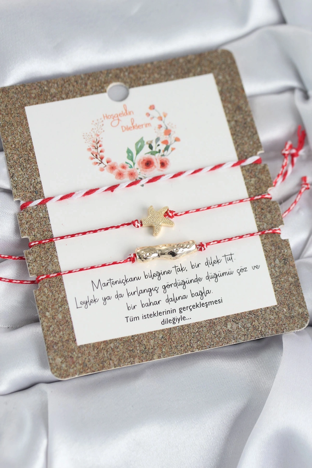 Bileklikler asansörlü makromedir. Objelerdeki renkler karışık renkte gönderilebilir.Martenicka Hikâyesi ve KökeniMartenicka geleneği, baharın gelişi, doğanın uyanışı ve iyilik–sağlık dilekleri ile ilişkilidir.En yaygın anlatıya göre:Balkan mitolojisinde “Baba Marta” (Mart Ana) adında bir figür bulunur.Baba Marta’nın yüzü neşeli olduğunda hava ısınır,Kızdığında ise yeniden soğur veya kar yağar.İnsanlar Baba Marta’nın yüzünü güldürmek, baharı çağırmak ve kötü ruhları uzak tutmak için kırmızı-beyaz ipten Martenicka takarlar.