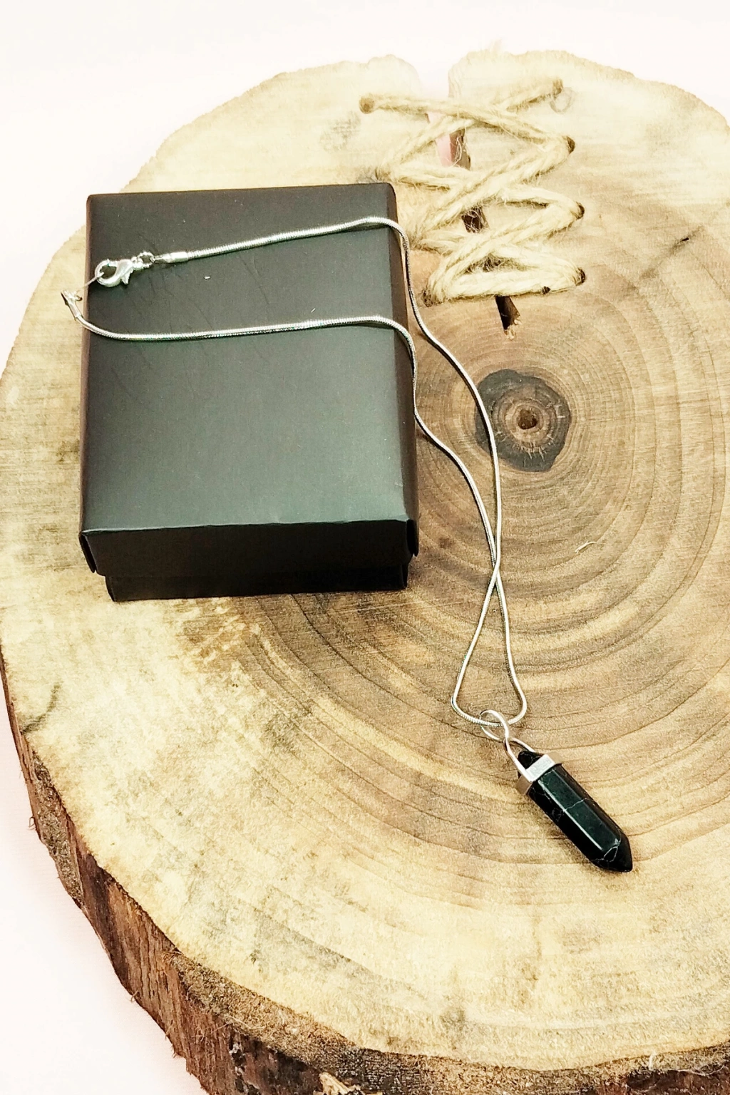 Mat Oniks Doğal Taşı Zincirli El Yapımı Tasarımlı Kolye Uç: 3,5 cm Zincir: 20 cm Kutulu