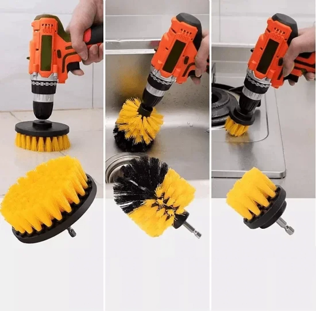 Matkap Ucuna Takılan 3'lü Fırça Seti Kolay Temizlik Fırça Seti Sarı