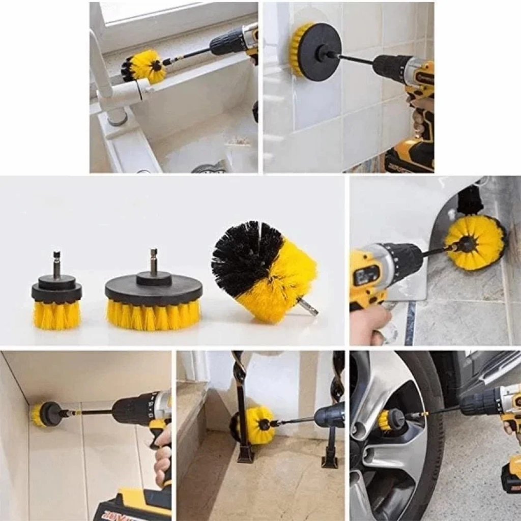 3lü Matkap Ucu Banyo Küvet Duşakabin Araba Tekerliği Koltuk Yıkama Temizleme Fırçası Seti (4887)