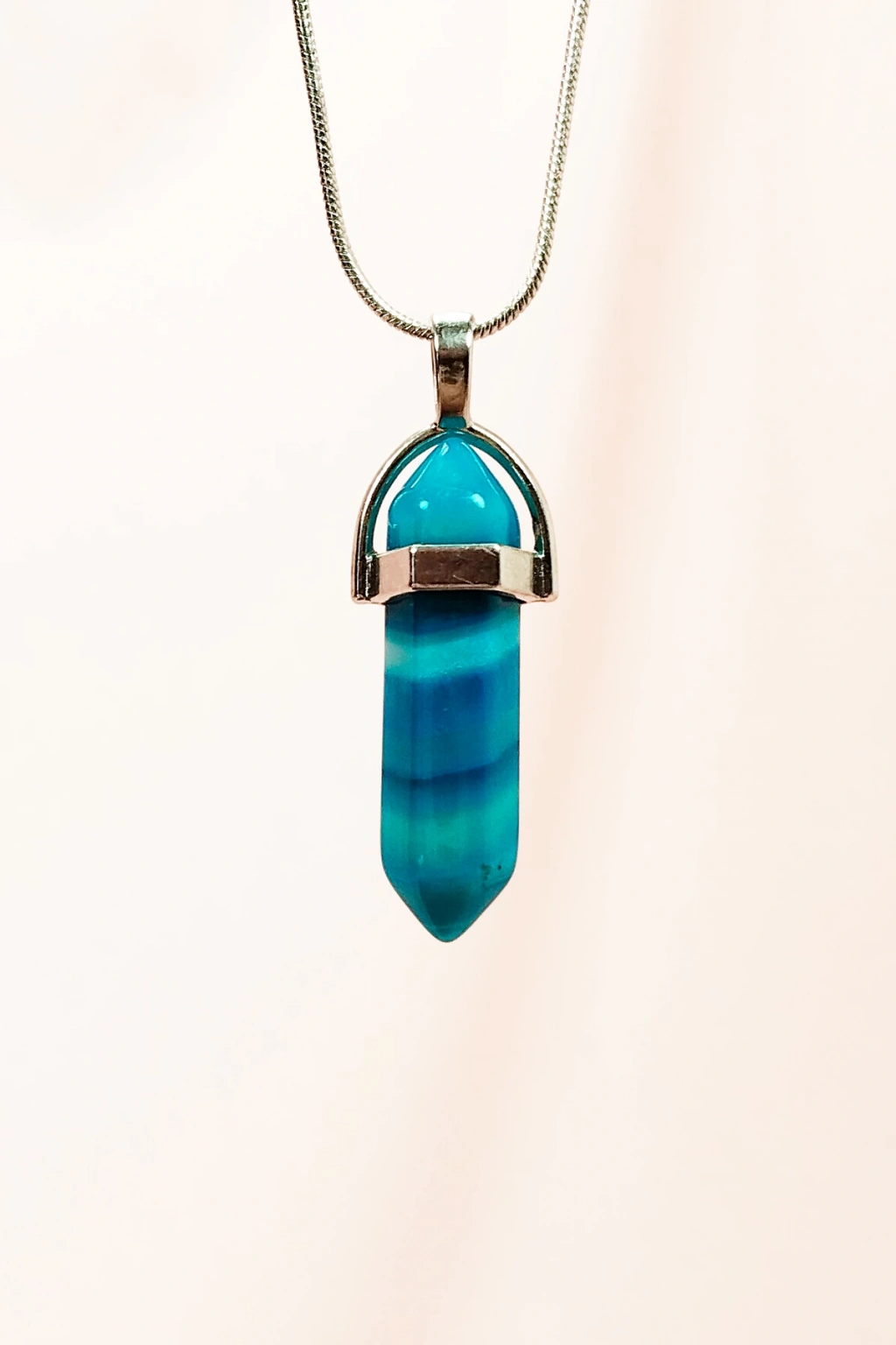 Kalsedon Doğal Taşı Zincirli El Yapımı Kolye Uç: 1,5 cm Zincir: 20 cm Kutulu