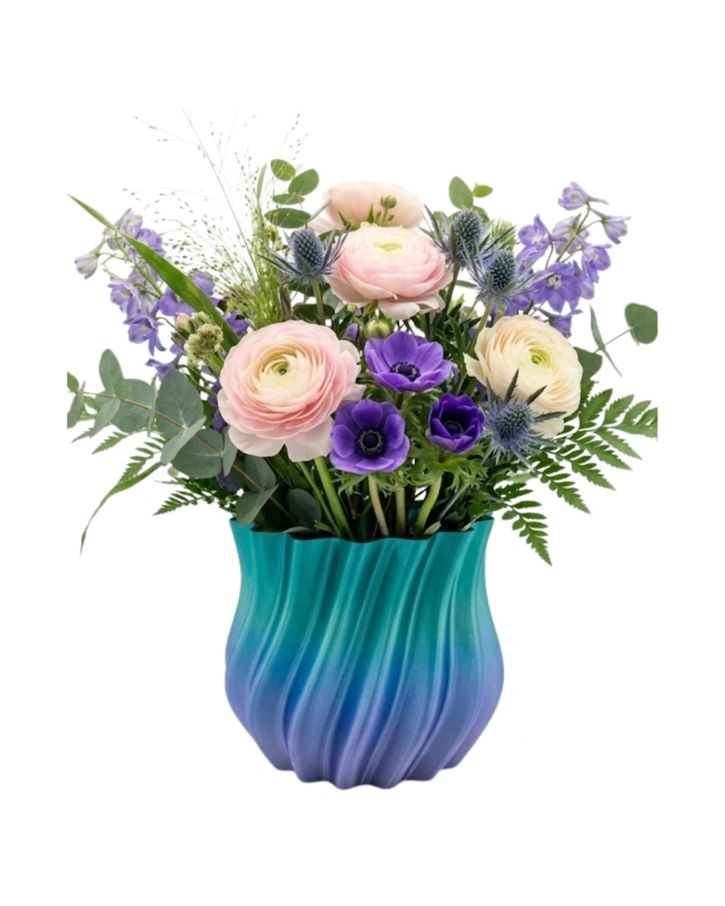 Kıvrımlı formu ve modern çizgileri ile öne çıkan 3D mavi vazo, dekorasyonda fark yaratmak isteyenler için tasarlanmıştır. Dalgalı yüzey yapısı, klasik vazo tasarımlarından ayrılarak bulunduğu ortama hareket ve es bir derinlik kazandırır. Mavi rengin sakinleştirici ve dengeli etkisi, yaşam alanlarında huzurlu bir atmosfer oluşturur.Mini boyutlu yapısı sayesinde özellikle dar alanlarda kullanım için oldukça uygundur. Büyük ve yer kaplayan dekoratif ürünler yerine, küçük ama etkili bir dokunuş arayanlar için ideal bir üründür. Çalışma masası, komodin, TV ünitesi veya raf dekorasyonu için mükemmel bir seçimdir.Ürünün yüzeyinde bulunan kıvrımlı detaylar, ışıkla etkileşime girerek farklı ton geçişleri oluşturur. Bu sayede her açıdan farklı bir es sunar. Gündüz doğal ışıkta daha canlı bir görünüm elde edilirken, gece aydınlatmalarında daha soft ve şık bir atmosfer yaratır.Modern, minimal ve endüstriyel dekorasyon tarzları ile uyum sağlayan bu vazo, farklı yaşam alanlarında rahatlıkla kullanılabilir. Aynı zamanda hediye olarak da tercih edilebilecek şık bir üründür. Yeni ev hediyesi, doğum günü veya özel günler için es ve kullanışlı bir alternatif sunar.