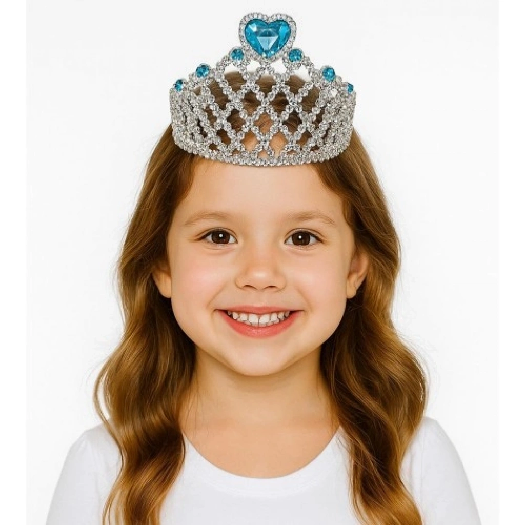 Mavi Kalpli Gümüş Renk Kraliçe Tacı Prenses TacıMavi Kalpli Gümüş Renk Kraliçe Tacı Prenses Tacı masalsı tasarımıyla küçük prenseslerin hayallerini gerçeğe dönüştürür. Zarif gümüş rengi ve ortasında yer alan mavi kalp detayıyla şık, romantik ve dikkat çekici bir görünüm sunar.Gümüş Renk Prenses Tacı üzerindeki parıldayan taş detayları sayesinde ışığı güzel bir şekilde yansıtarak masalsı bir atmosfer oluşturur. Özel günlerde fotoğraf çekimlerinde göz alıcı bir tamamlayıcıdır.Hafif ve Rahat Kraliçe Tacı plastik malzemeden üretilmiş olup hafif yapısı sayesinde gün boyu rahatlıkla kullanılabilir. Başı rahatsız etmeden konforlu bir deneyim sunar.Çocuk ve Yetişkin Uyumlu Prenses Tacı tek beden yapısıyla çocuklar ve yetişkinler için uygundur. Doğum günü partileri, kostüm partileri, düğünler, özel kutlamalar ve oyun saatlerinde ideal bir aksesuardır.Ürün ÖzellikleriMalzeme: PlastikRenk: Gümüş – MaviTasarım: Mavi kalp detaylıBeden: Tek bedenKullanım: Çocuk ve yetişkin uyumluKullanım Alanı: Doğum günü, kostüm, özel günler