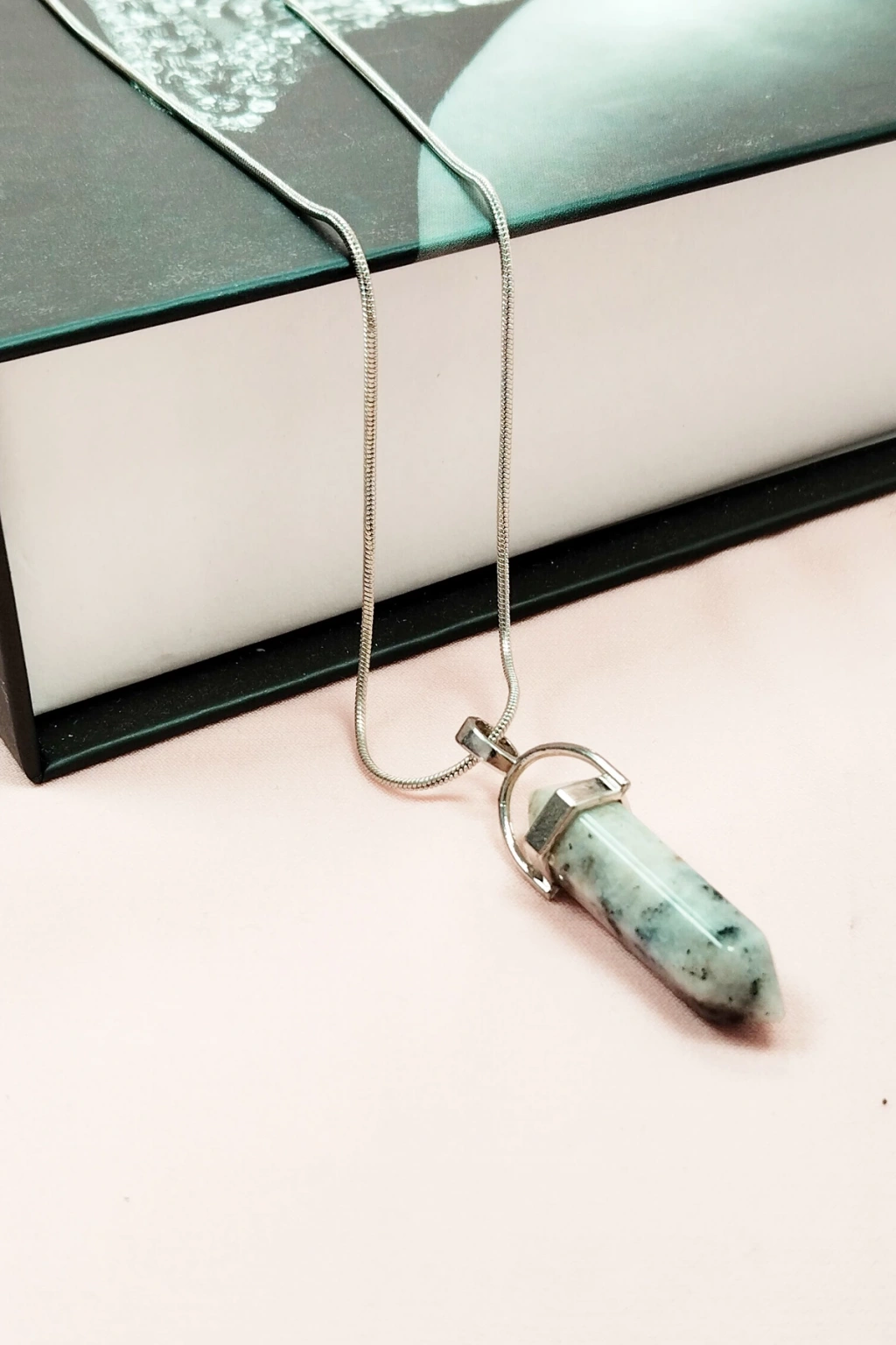 Yeşim Doğal Taşı Zincirli El Yapımı Tasarımlı Kolye Uç: 3,5 cm Zincir: 20 cm Kutulu