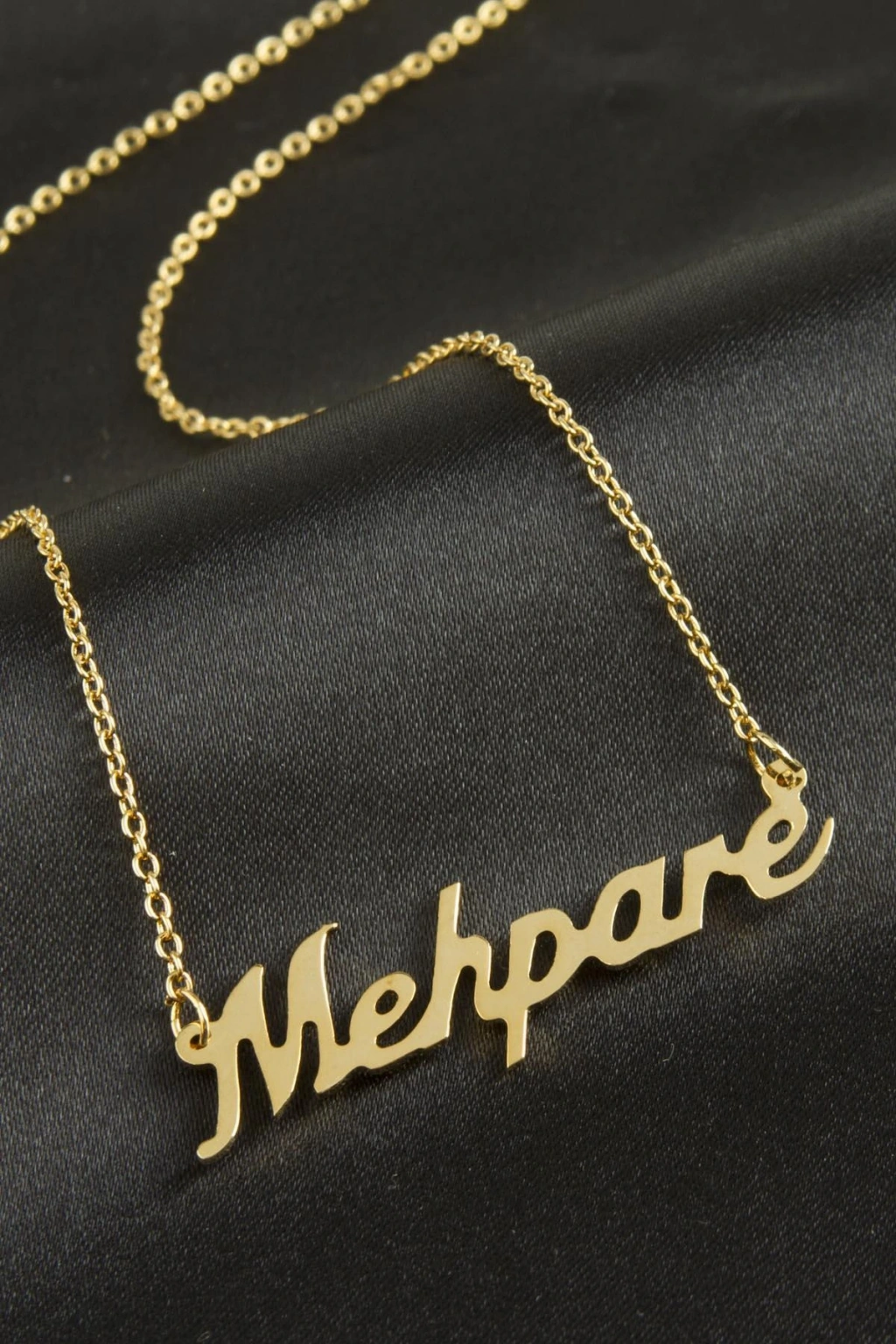Mehpare isimli kolye. İsimli kolye pirinç madeninden ve altın kaplamalıdır. Kişiye özel üretilmektedir.Yazdırmak istediğiniz ismi bize mesaj olarak iletmeniz gerekmektedir. Kullanıma bağlı olarak uzun süre kullanıma uygundur. Ürün malzemesi 1.sınıf kalitededir. Ürün ve zinciri sarı renktedir. Ürün zincir boyu 45 cm ve ürün üzerindeki isimler yaklaşık 3 cmdir. İsim boyları ürün ismine göre degişiklik göstermektedir.