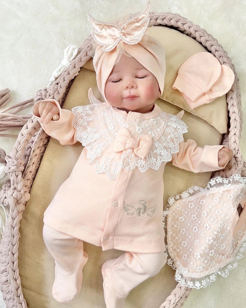 Melek Kanatlı % 100 Pamuk 5'li Kız Bebek Hastane Çıkış Seti