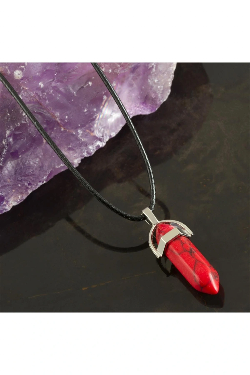 Kolye; Ürün malzemesi point taş ve metaldir. Ürün boyu 45 cmdir. Ürün ucundaki aparat boyu 3,5 cmdir.
