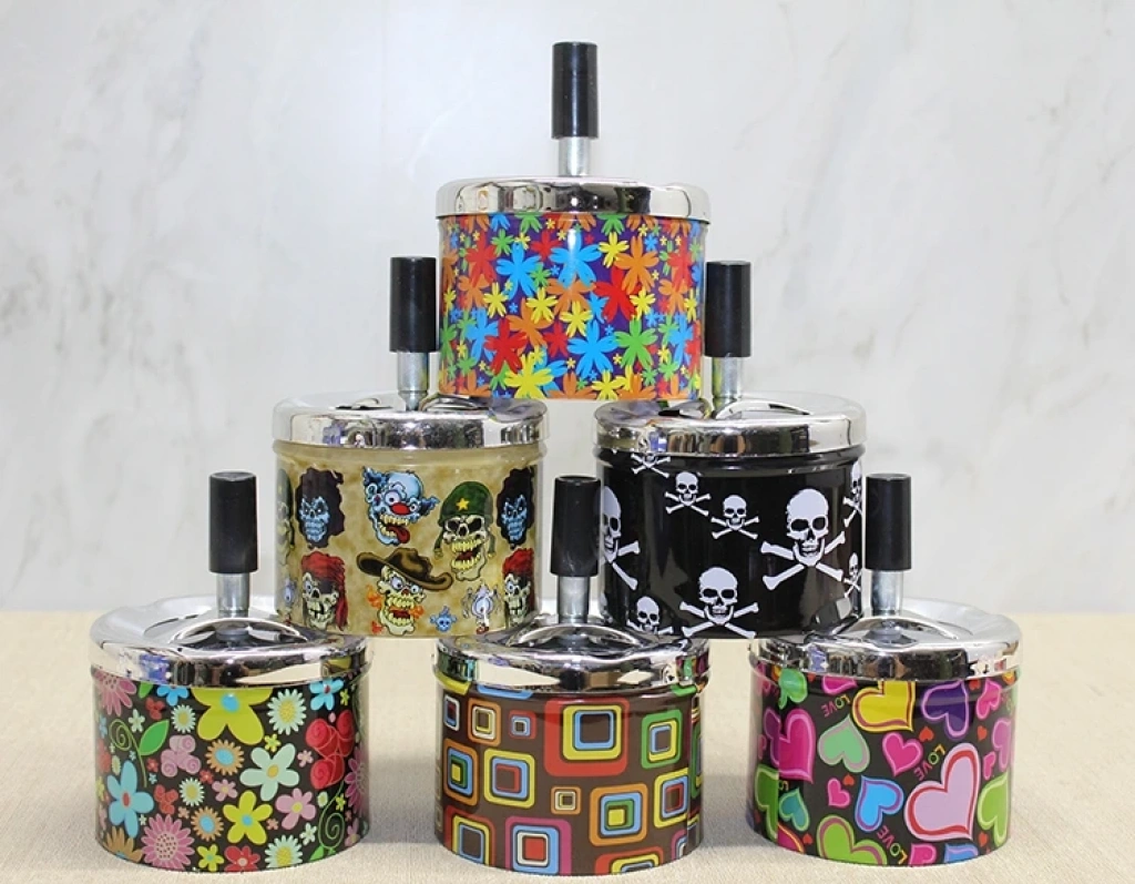 METAL RENKLİ BASMALI KÜLLÜK YUVARLAKÜrün ÖzellikleriMetal renkli basmalı yuvarlak küllük, dayanıklı metal malzemeden üretilmiştir ve uzun süreli kullanım için uygundur. 9x12 cm boyutundaki pratik ölçüleri sayesinde hem evde hem de dış mekânlarda kolayca kullanılabilir. Basmalı mekanizması ile izmaritleri iç kısma düşürerek kötü kokuların ve dağınıklığın önüne geçer. Çeşitli renkli desen seçenekleriyle üretilmiş olup, siparişlerde görseldeki modellerden olarak gönderilir. Dekoratif görünüme sahip bu küllük, hem şıklık hem de fonksiyonellik sunar.Paket İçeriği1 adet Metal Renkli Basmalı Küllük Yuvarlak