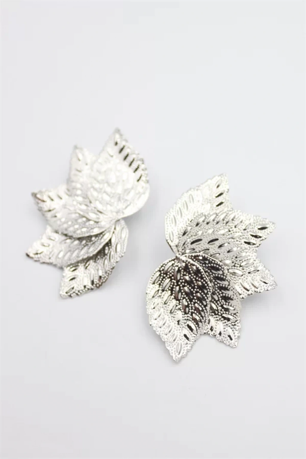 Metal Yaprak Küpe - Gümüş