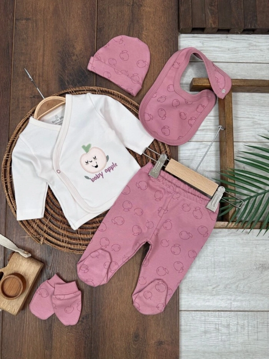 Mevsimlik Yenidoğan 5li Bisiklet Yaka Kız Bebek Hastane Çıkış Seti