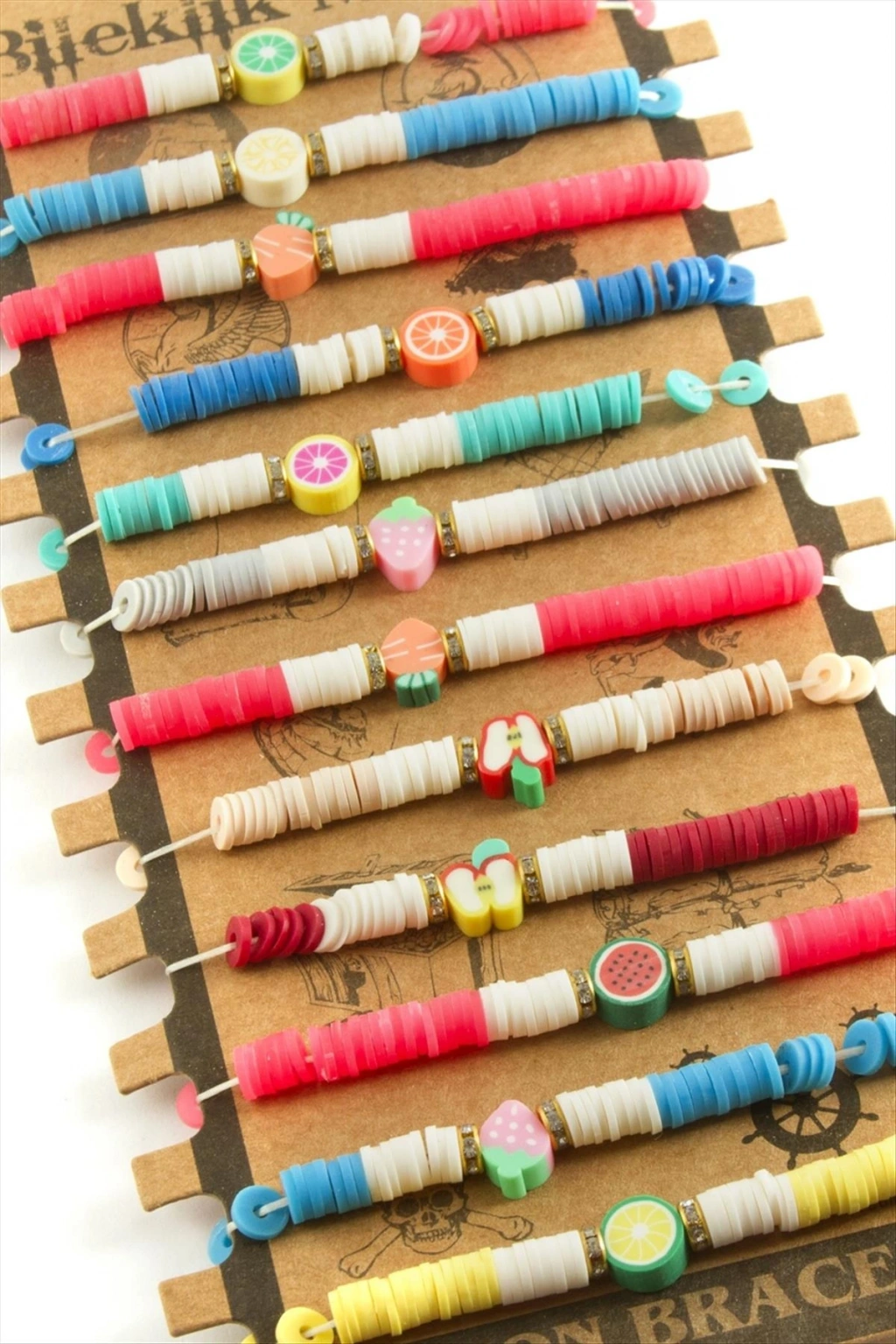 Bileklik; Ürün malzemesi fimo boncuk ve misina üzerine dizilmiştir.Ürün renkleri asortilidir. Siparişlerinizde karışık olarak gönderilecektir.