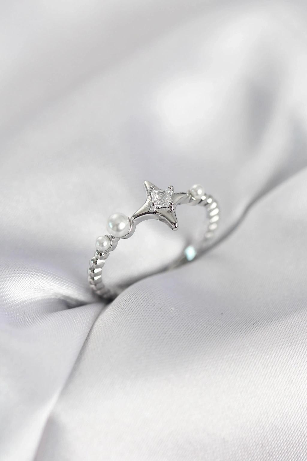 Minimal Kutup Yıldızı Model Zirkon Taşlı Gümüş Renk Kadın Yüzük - TJ-BYK4126