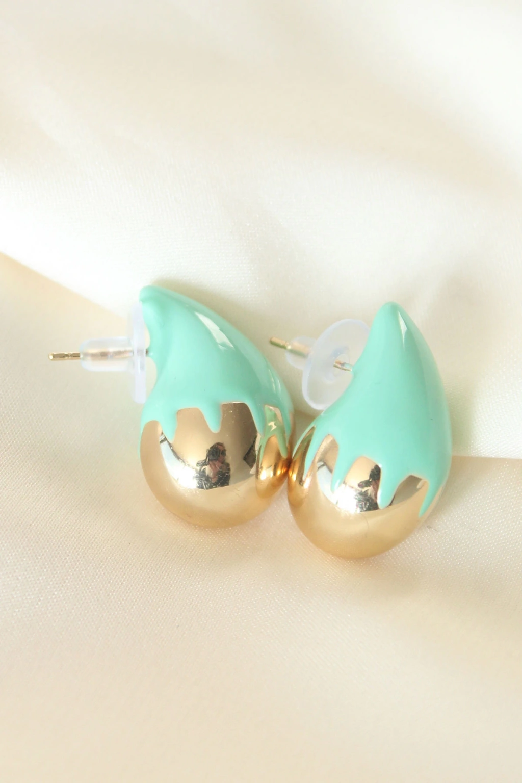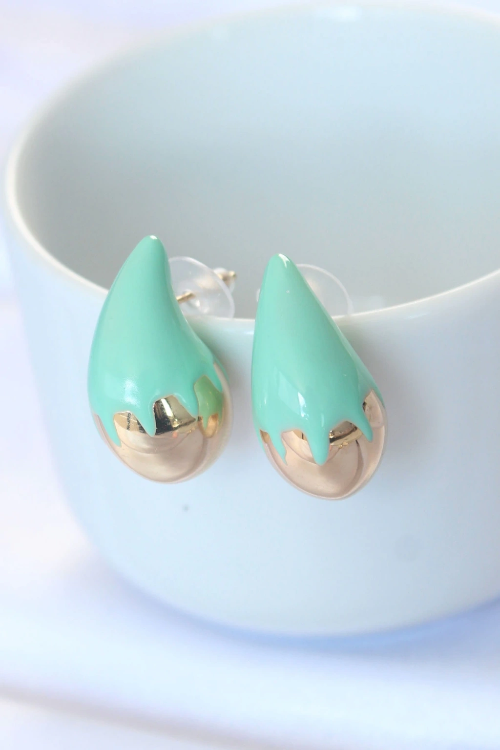 Minimal Turkuaz Mineli Çift Renk Damla Küpe - TJ-BKP8867