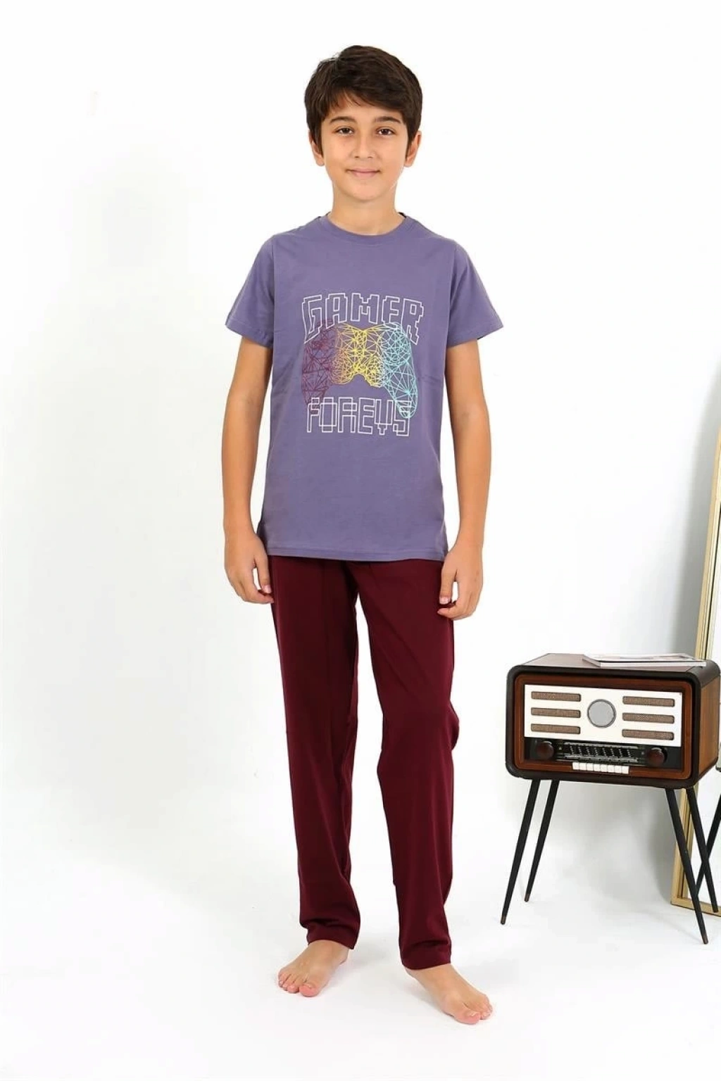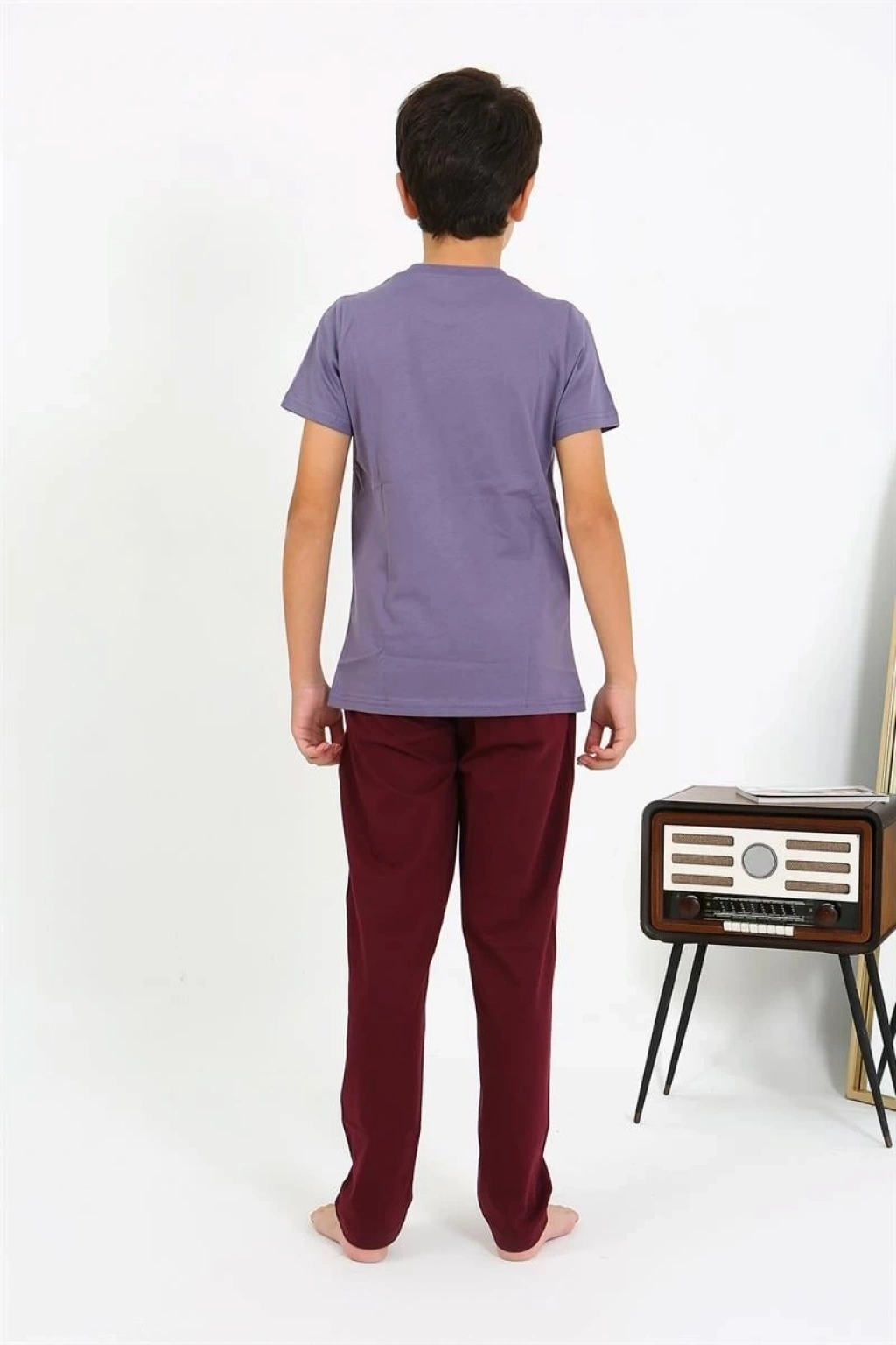 Çamaşır Kenti Erkek Çocuk Kısa Kol Penye Pijama Takımı Mor, hem şık hem de rahat bir uyku deneyimi sunar.