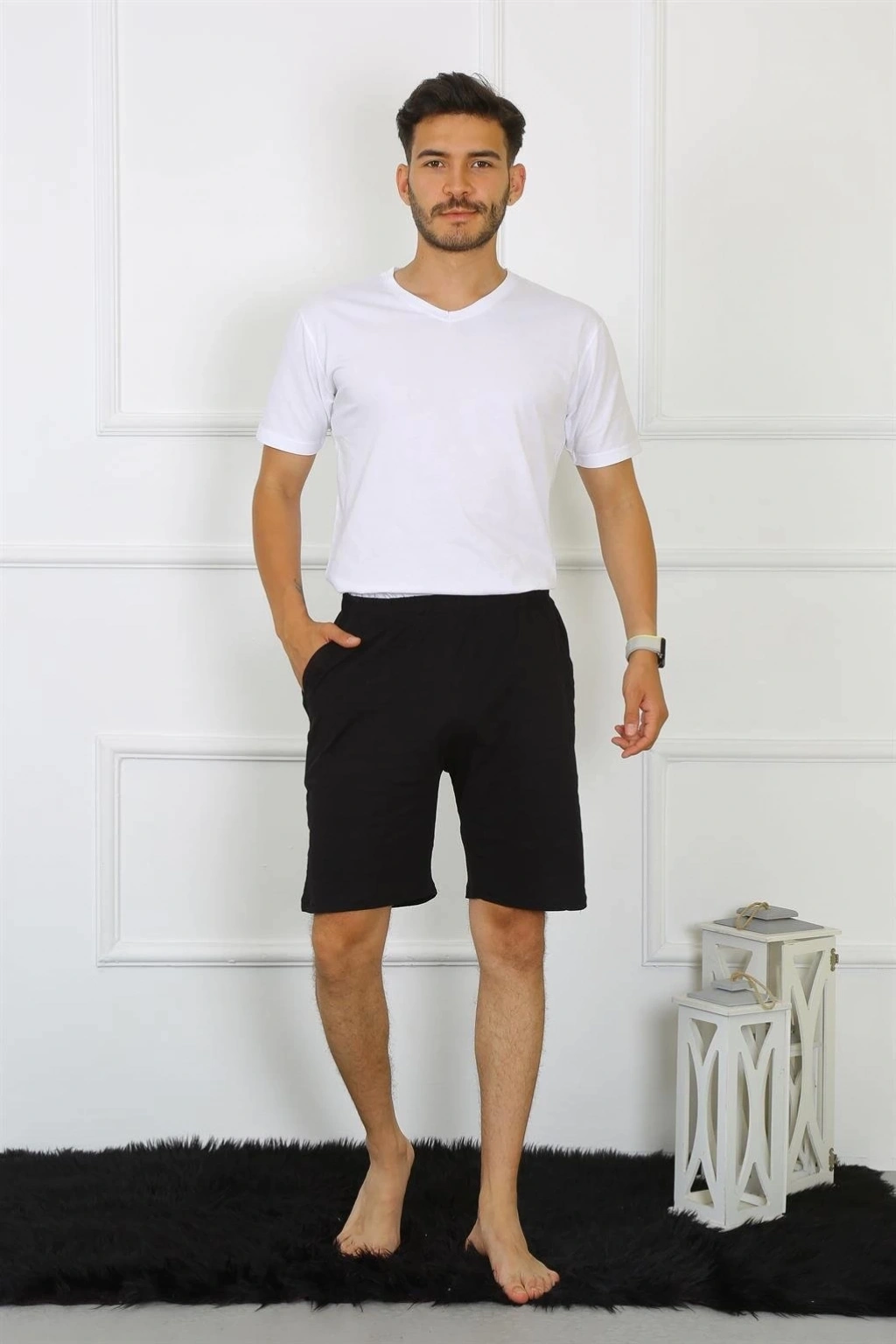 Çamaşır Kenti Erkek Pamuk Siyah Şort, şıklığı ve rahatlığı bir arada sunar.