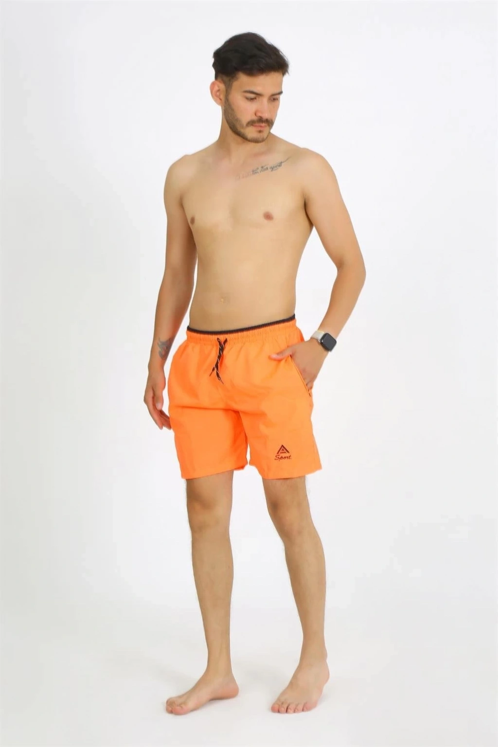 Çamaşır Kenti markasının erkek Turuncu deniz şortu, plaj günlerinizde şıklığı ve konforu bir arada sunuyor.