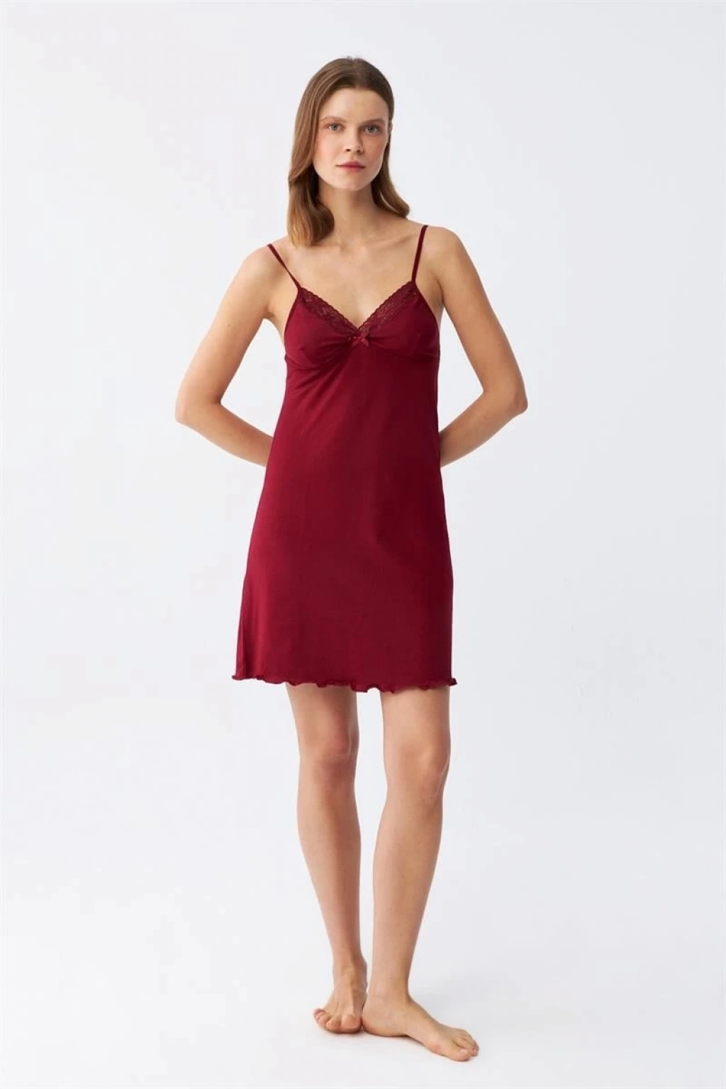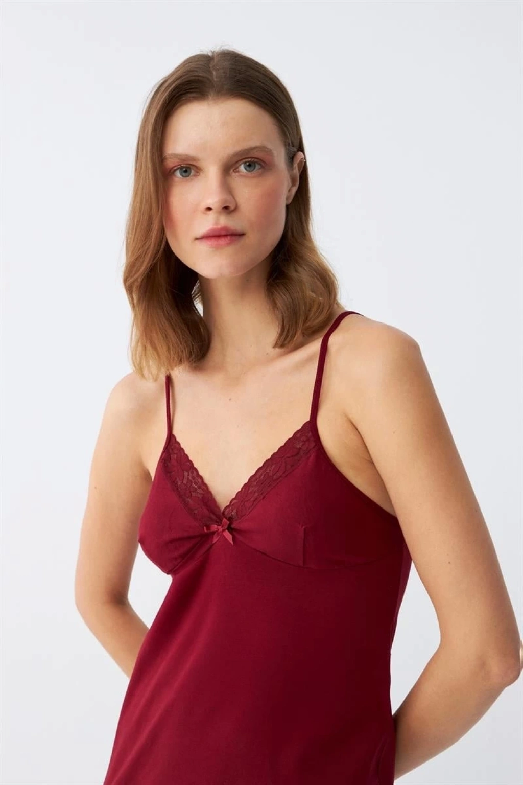 MİRAY- İp Askılı Penye Gecelik Bordo