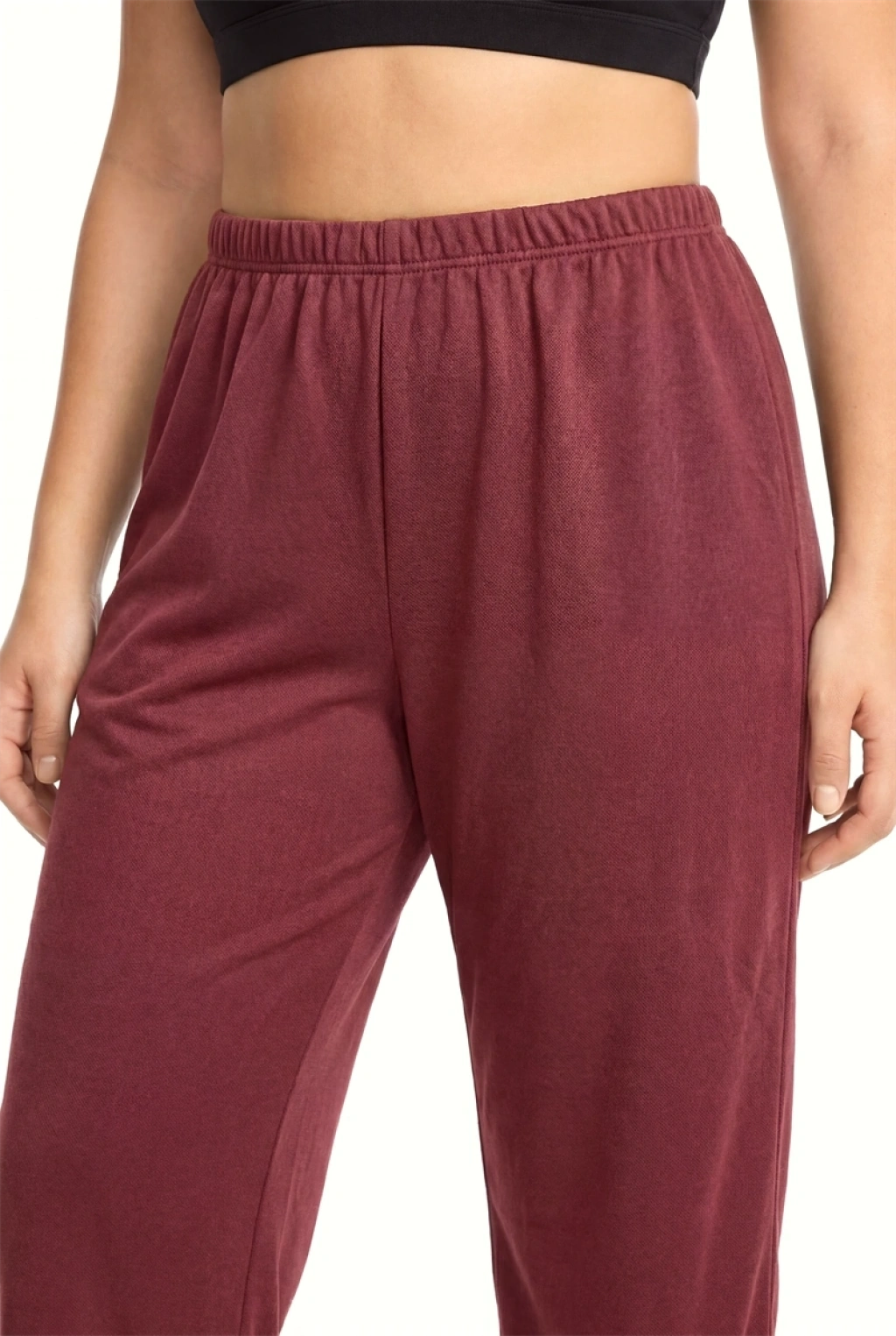 Şık bordo rengi ve dokulu kumaş detayı sayesinde klasik pijama altlarından ayrılarak hem rahat hem modern bir görünüm sunar.