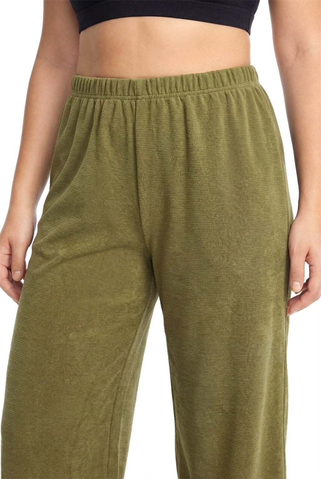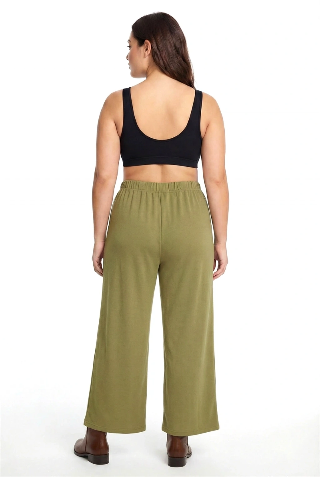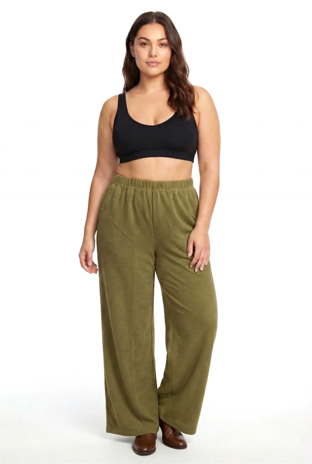 MİRAY- Kadın Haki Dokulu Büyük Beden Cepli Pijama Altı