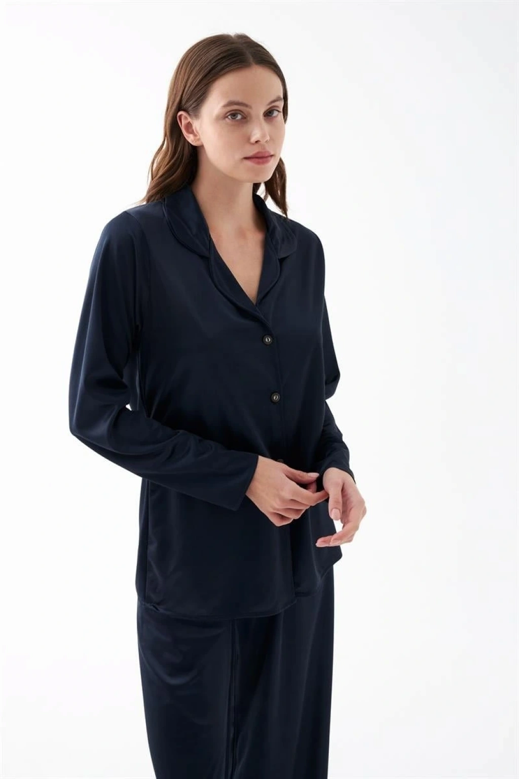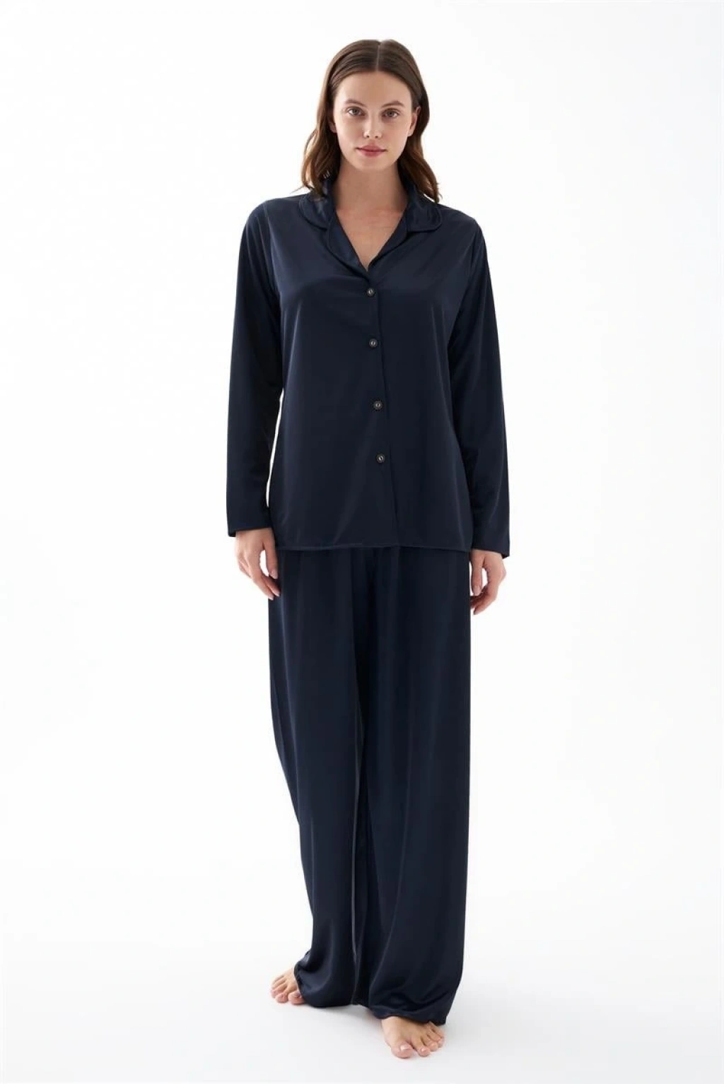 Lacivert rengin klasik ve zamansız duruşu sade bir şıklık oluşturur ve hem uyku giyimi hem günlük ev kombinleri için ideal bir alternatif sunar. Rahat yapısı sayesinde vücudu sıkmadan konforlu bir kullanım sağlar.