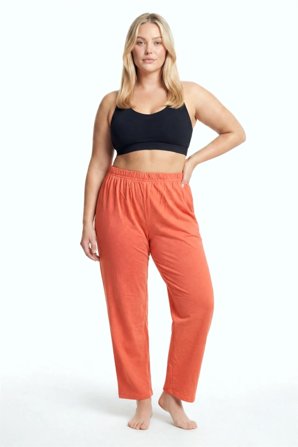 MİRAY- Kadın Turuncu Dokulu Büyük Beden Cepli Pijama Altı Rahat Kesim Esnek Bel Günlük Ev Giyim Alt