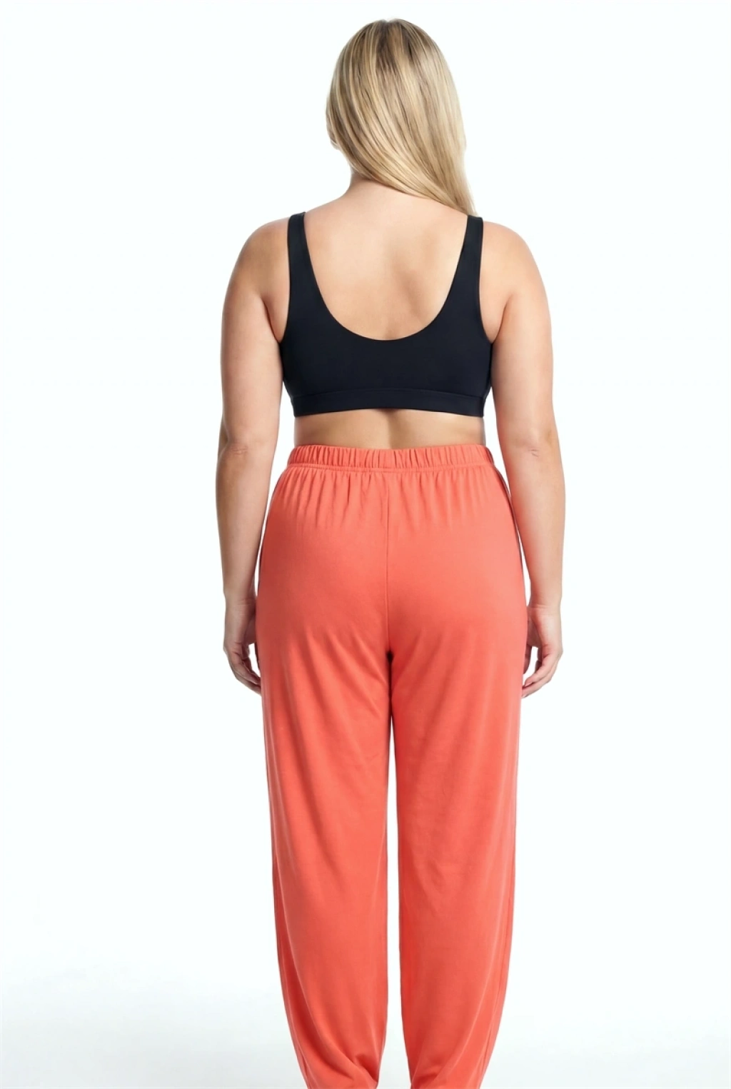Büyük beden uyumlu geniş kalıbı hareket özgürlüğü sunarken, esnek bel yapısı vücudu sıkmadan ideal oturuş sağlar. Canlı turuncu rengi ile ev giyimine modern ve dinamik bir görünüm kazandırır.