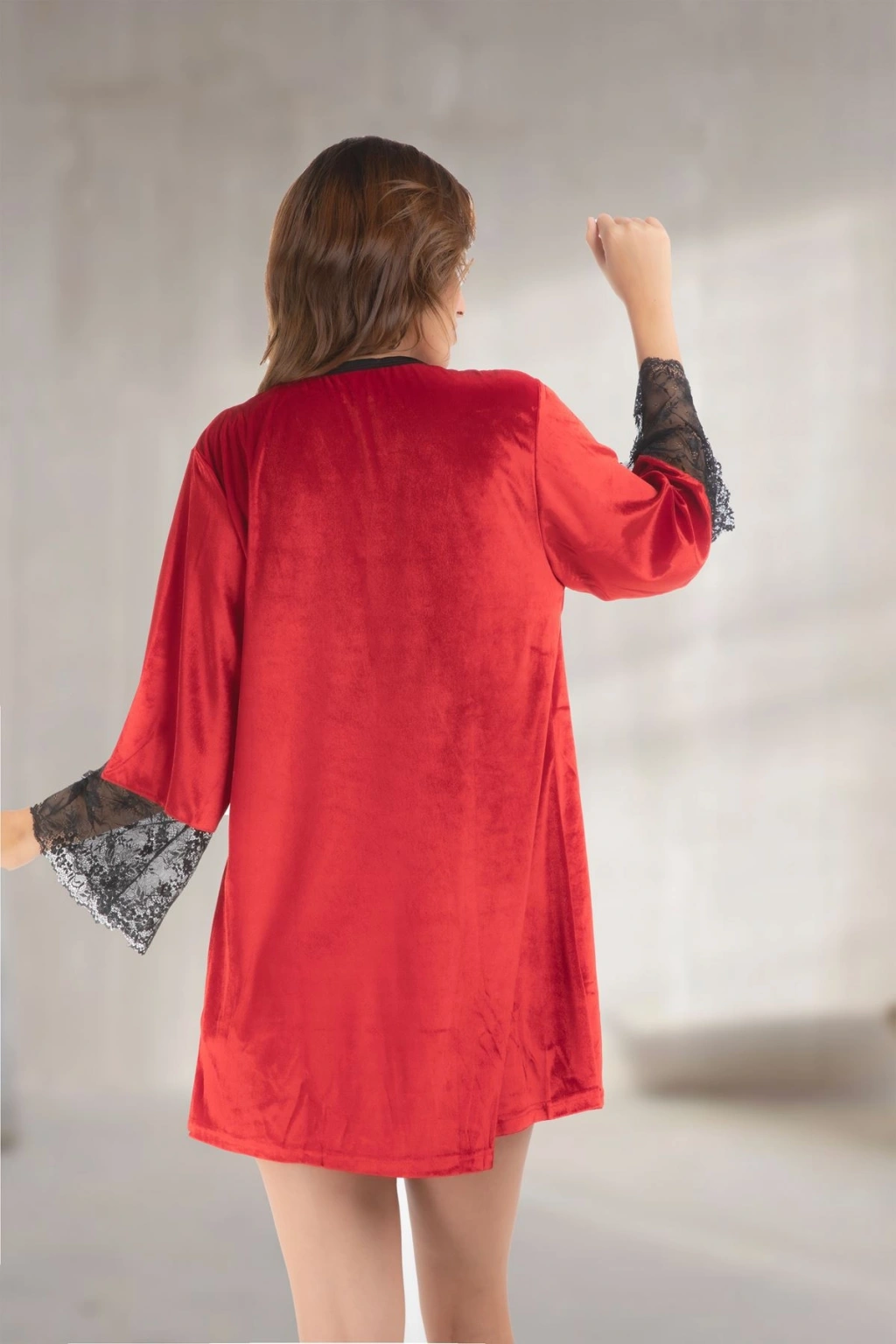 Sistina 1442 Kadife Kırmızı Sabahlık Takım Üstün Kalitede Kumaşlardan üretilmiştir. Özel Paketinde Gönderilmektedir. Kumaş türü : %80 Kadife %20 Dantel Ürün içeriğ i : Gecelik + Sabahlık S/M - (36-38) L - (40) XL - (42) Bedenlere olmaktadır.