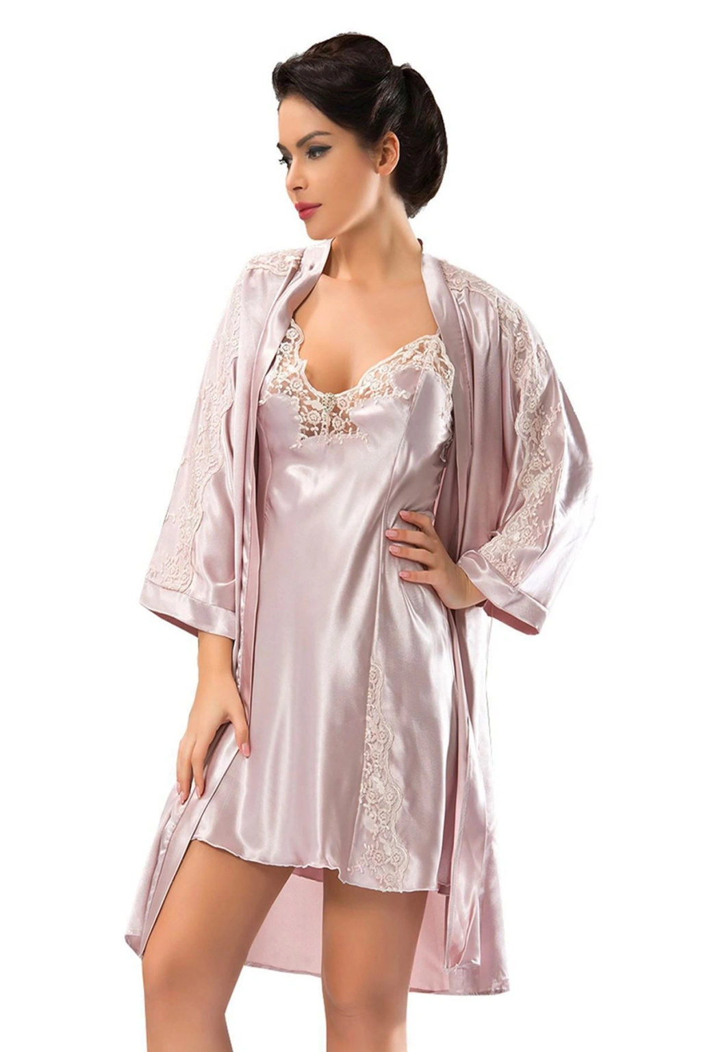 Sistina 1420 Gecelik Sabahlık Takım Üstün Kalitede Kumaşlardan üretilmiştir. Özel Kutusunda ve Özel Hijyen Paketinde Gönderilmektedir. Kumaş türü : %90 Saten % 10 Dantel Ürün içeriği : Gecelik + Sabahlık S-36 M-38 L-40 Bedenlere olmaktadır.