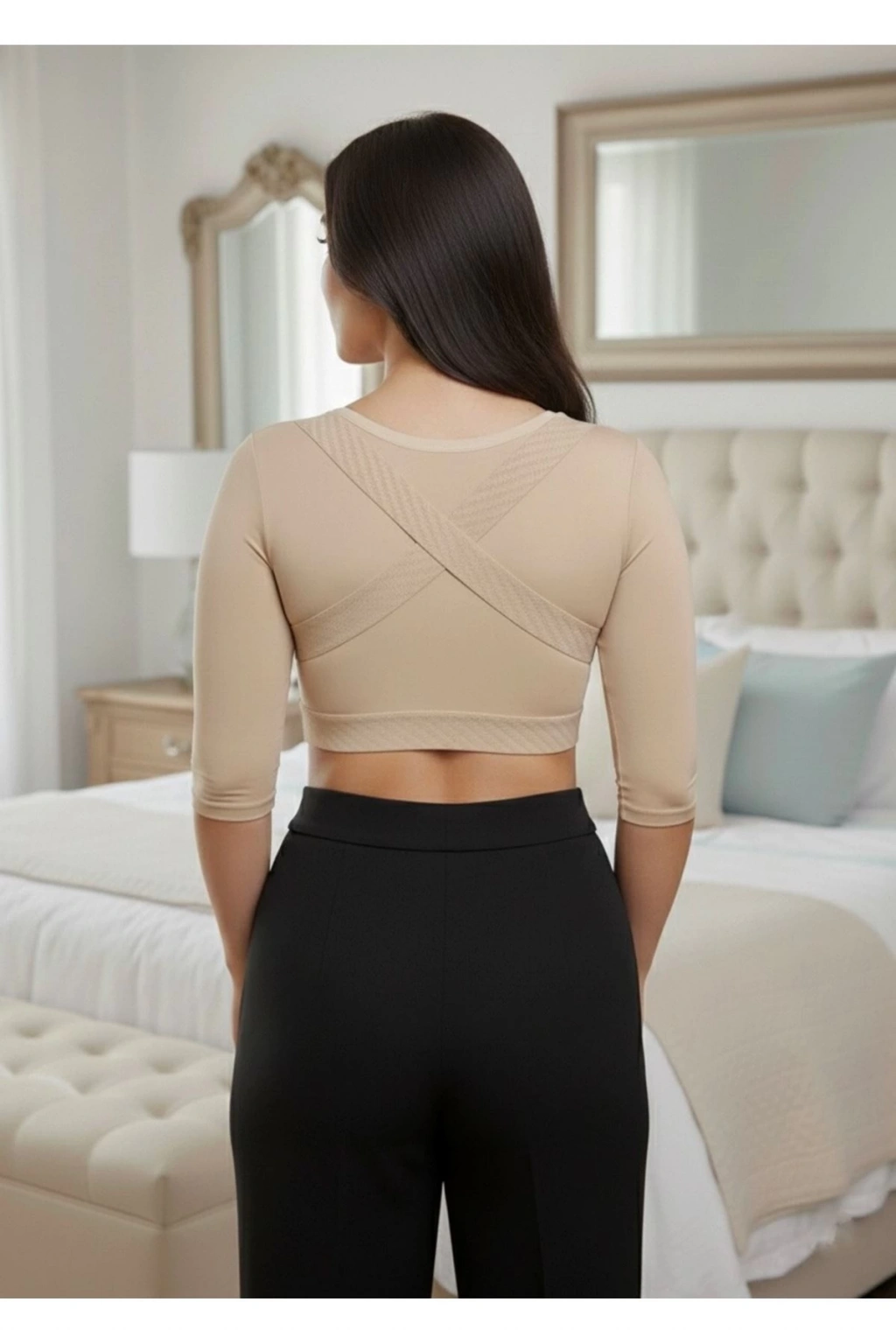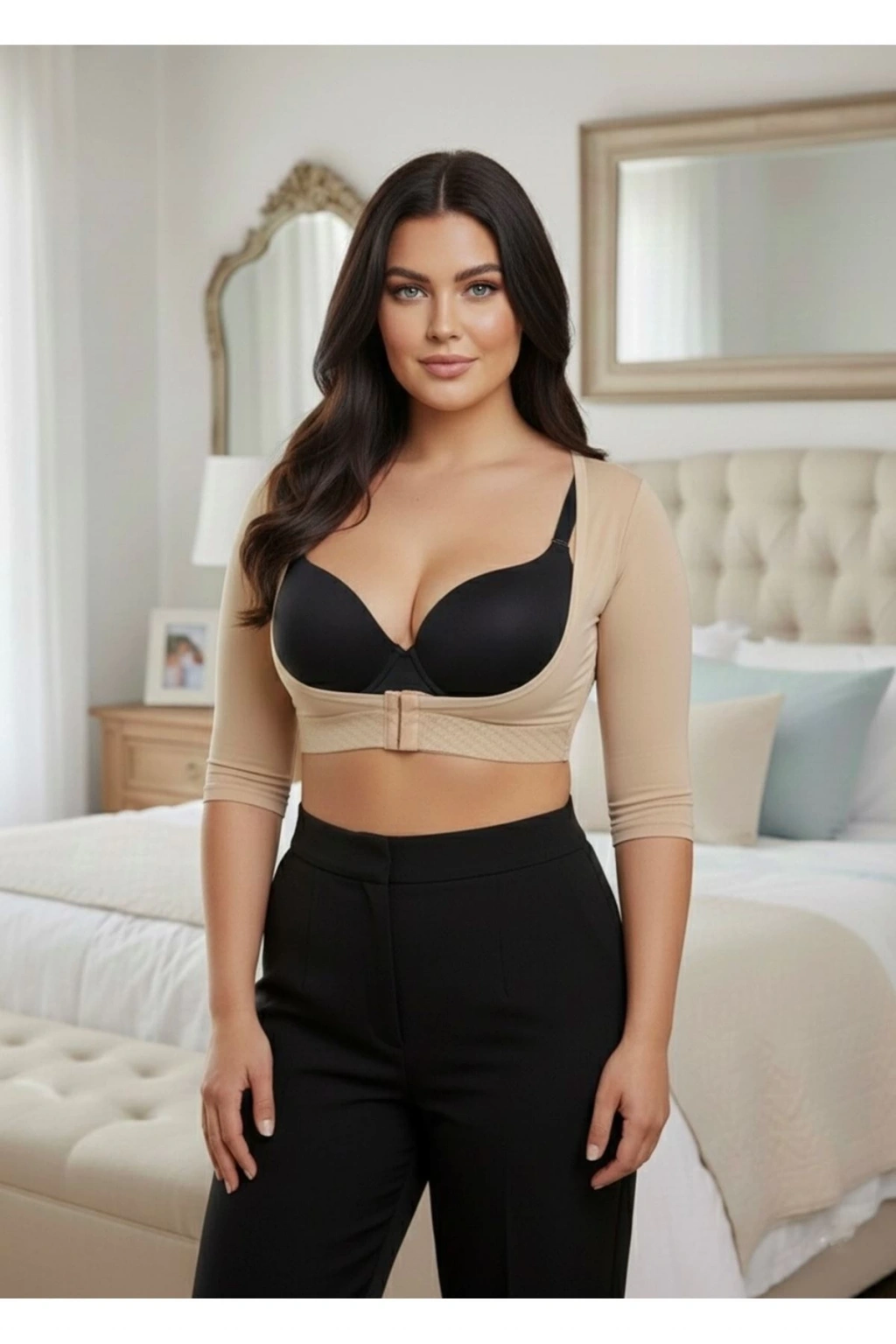 Üst Kol Şekillendirme Sıkıştırma Uzun Kollu Kadın Kol Shapewear | Kambur Duruş Düzeltici | Omuz ve Göğüs Desteği | Push Up Üstler