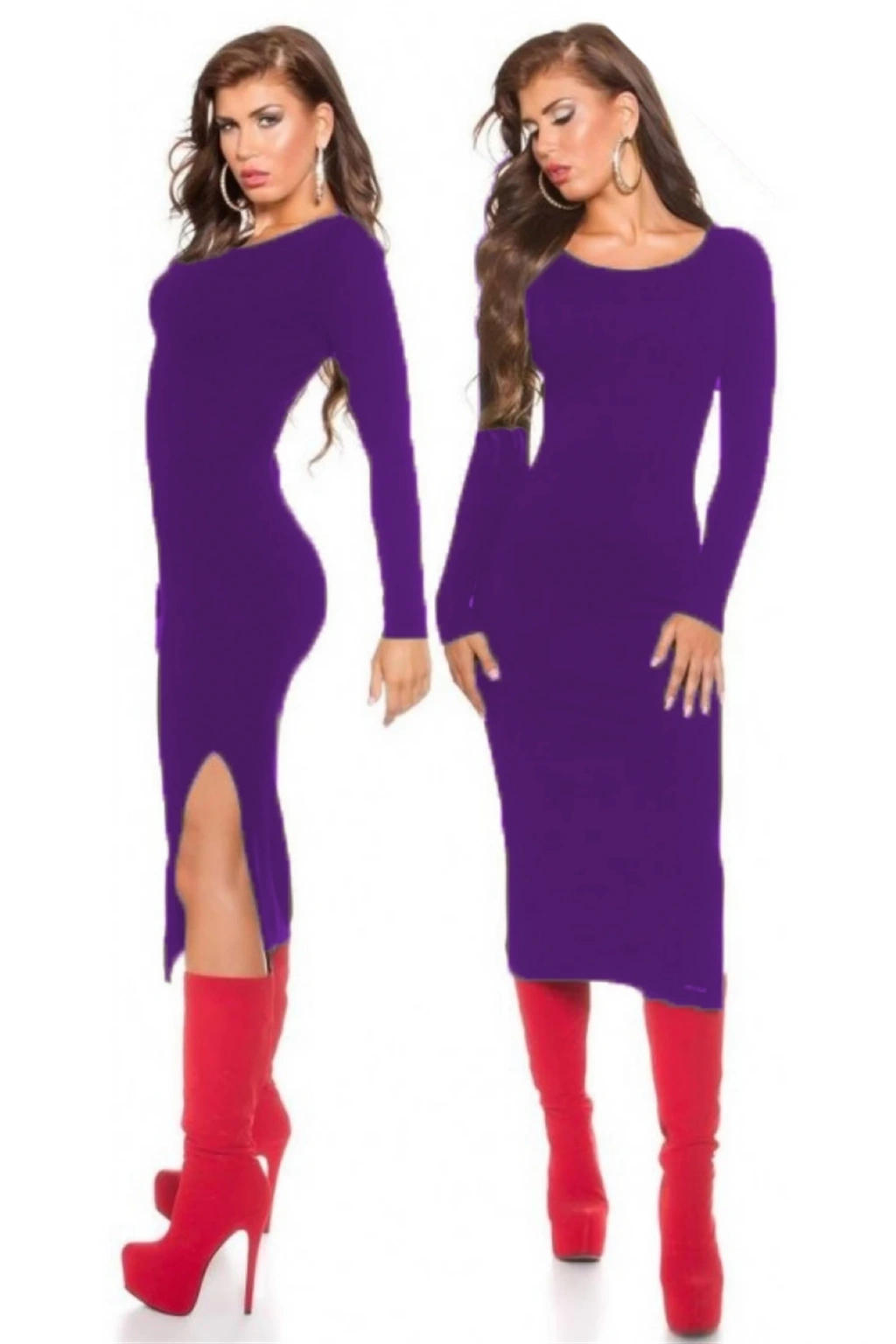 MARSİLYAN- TP101171 Uzun Kollu Yırtmaçlı Kalem Elbise