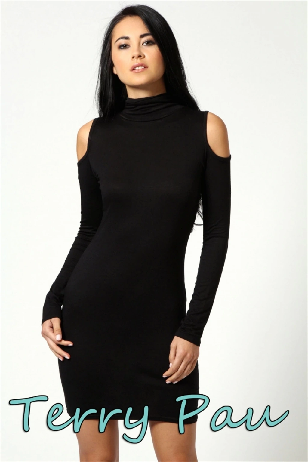 MARSİLYAN- TP101177 Omuzu Açık Uzun Kollu Elbise