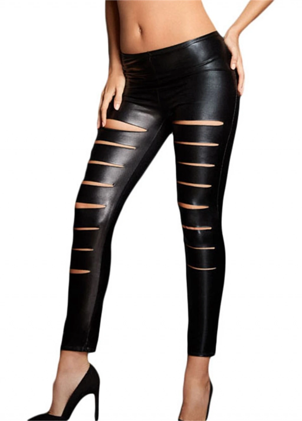 MARSİLYAN- TP101289 Yırtık Deri Tayt Görünümlü Lame Tayt