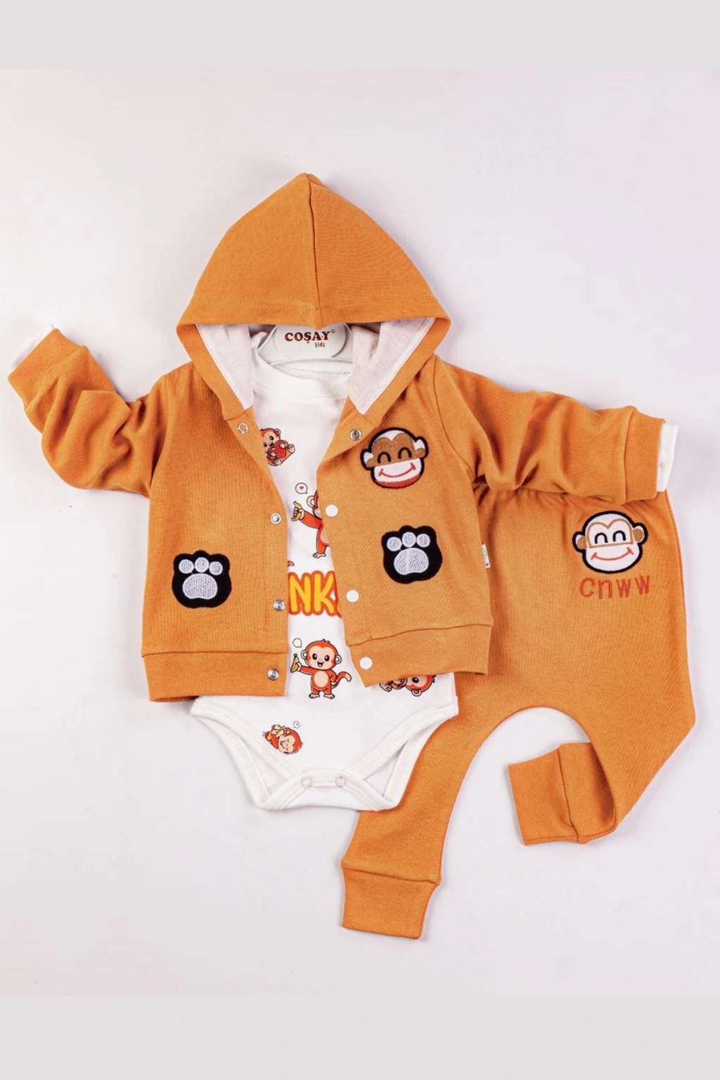 Monkey Nakışlı Kapişonlu Erkek Bebek Takım
