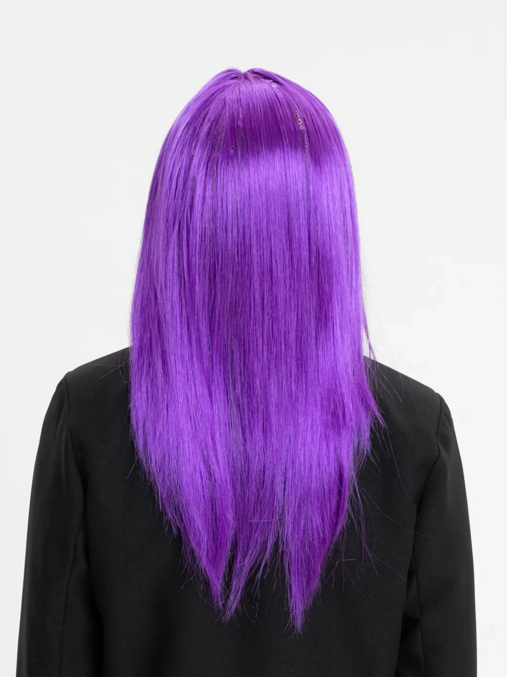 Bu peruk, canlı ve cesur mor rengi ile dikkat çekici bir görünüme sahiptir. Düz kesimi ve uzunluğu ile modern ve şık bir tarz sunar.