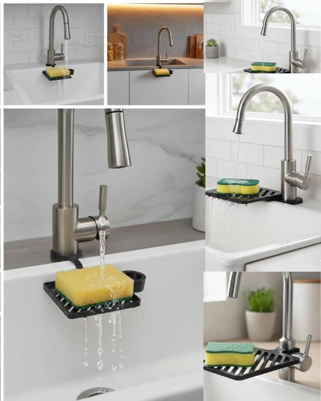 Mutfakta düzen ve hijyen arayanlar için özel olarak tasarlanan musluğa monte sünger organizeri, günlük temizlik rutininizi çok daha pratik ve sağlıklı hale getirir. Bulaşık süngerlerinin tezgâh üzerinde ıslak ve dağınık şekilde durması hem hijyen sorunlarına hem de kötü görüntüye neden olur. Bu ürün, süngerinizi doğrudan musluğun gövdesine entegre şekilde konumlandırarak tezgâhla temasını tamamen ortadan kaldırır.Organizer, musluğa sabit ve birleşik yapısı sayesinde ekstra at, yapıştırıcı ya da askı gerektirmez. Sünger, sabit platform üzerinde durur ve alt kısmındaki özel drenaj kanalları sayesinde yıkanan süngerden akan su doğrudan evyeye yönlendirilir. Böylece sünger daha hızlı kurur, bakteri ve koku oluşumu önemli ölçüde azalır. Islak süngerlerin oluşturduğu hijyen problemleri bu tasarım ile etkili şekilde çözülür.Alan tasarrufu sağlayan yapısı sayesinde özellikle küçük mutfaklar için idealdir. Tezgâh üzerinde yer kaplamaz, mutfak alanınızı daha düzenli ve ferah gösterir. Minimal ve modern tasarımı sayesinde hem klasik hem çağdaş mutfak dekorasyonlarıyla uyum sağlar. Mat yüzeyi, mutfakta şık ve bütüncül bir görünüm sunar.Günlük kullanıma uygun olarak tasarlanan bu musluk organizeri, sağlam ve dengeli yapısı sayesinde uzun süreli kullanım sağlar. Sünger değiştirirken ya da musluk altında yıkama yaparken stabil duruşunu korur. Temizliği son derece kolaydır; yalnızca suyla durulanarak hijyenik şekilde kullanılabilir.Hem hijyen hem de düzen arayan kullanıcılar için ideal bir mutfak yardımcısı olan bu ürün, mutfağınızda küçük ama etkili bir fark yaratır.