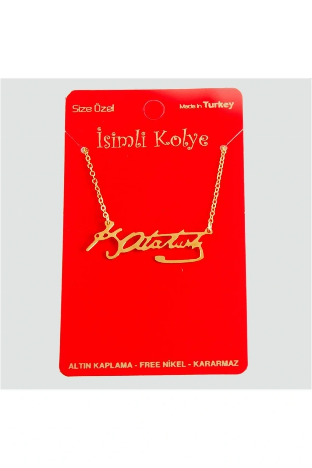 Kolye, Ürünlerimiz pirinç kesim olup , altın kaplamadır. kararma yapmaz. Ürün zincir boyu 45 cmdir. Ürün ucundaki aparat boyu 3,5 cmdir.