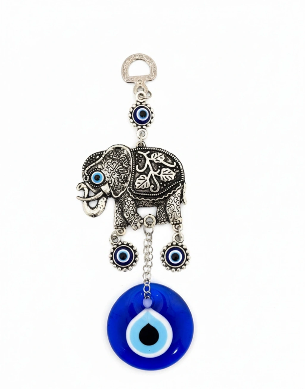 NAZAR BONCUĞU TEKLİ FİL ASKILIKÜrün ÖzellikleriNazar Boncuğu Tekli Fil Askılık, geleneksel nazar sembolünü Uğur ve bereket anlamı taşıyan fil figürüyle buluşturan dekoratif bir aksesuardır. Metal fil tasarımı üzerinde yer alan nazar boncukları hem şık görünüm hem de sembolik bir anlam kazandırır. Ev, ofis, araç içi veya kapı girişlerinde dekoratif süs olarak kullanılabilir. Hem klasik hem modern ortamlara uyum sağlayan yapısıyla dikkat çeker ve yaşam alanlarına şıklık katar. Fil figürü, kültürel olarak şans, bolluk ve dayanıklılık anlamı taşırken nazar boncuğu sembolü de kötü enerjilere karşı koruma ve huzur dileğini temsil eder. Dayanıklı metal malzemeden üretilmiş olup uzun süreli kullanım için uygundur. Sevdiklerinize anlamlı ve dekoratif bir hediye alternatifi sunar.Paket İçeriği1 Adet Nazar Boncuğu Tekli Fil Askılık